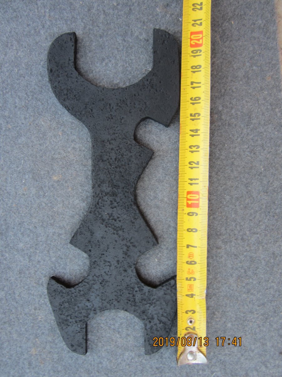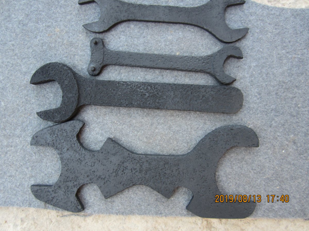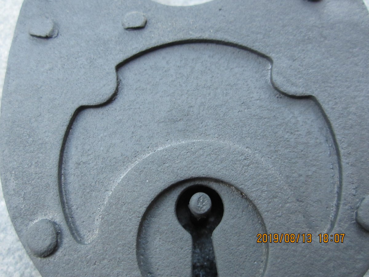 Приветствую. Подскажите по ключам. Общее фото . С верху вниз 22 на 19. плоский. может от Максимки? 2- на 17. расстояние между пупырышками 20. 3-масивный чугунный, штанген показывает 25. 4- интересный ключик 50 на 36 мм. скорее минометный. И большой амбарный замок. Клейма разобрать не смог.