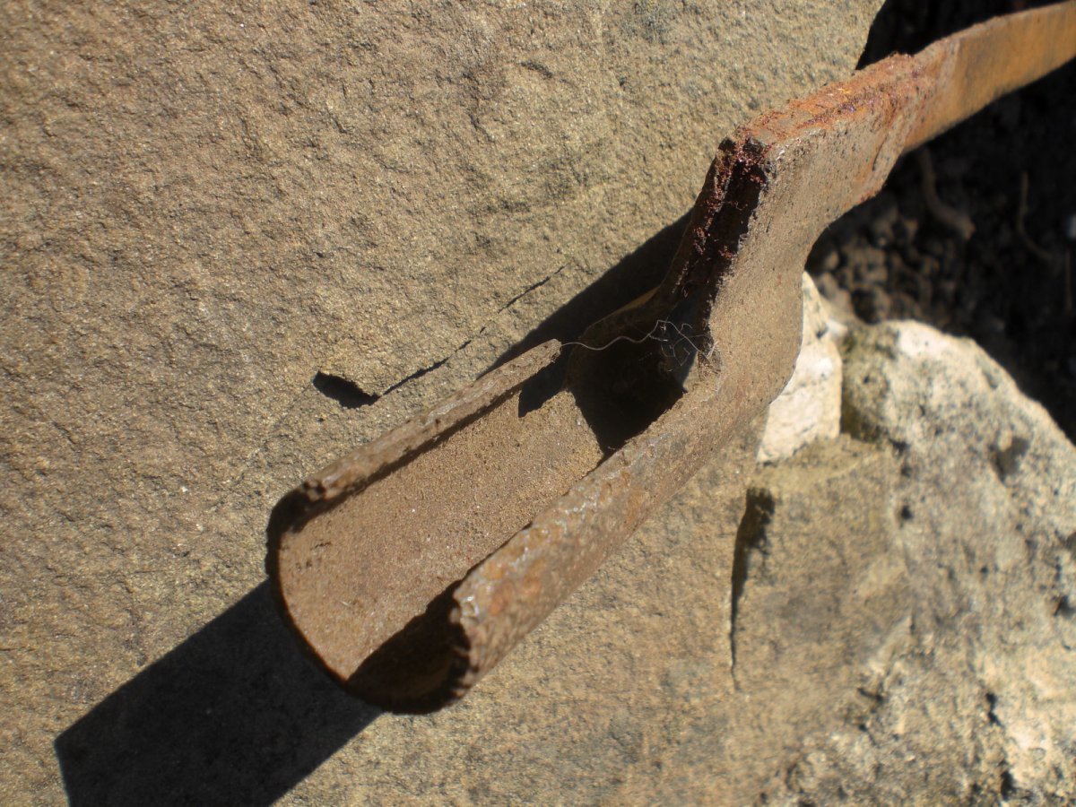 И еще: Верхняя штука вроде как гвоздь булавы? А вот что за молоточек такой малюсенький не понятно. А может и не молоток. Хотя края битые.