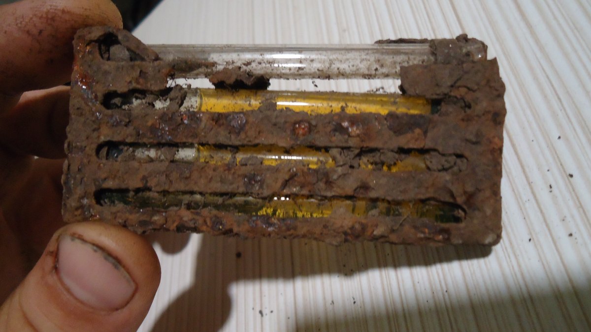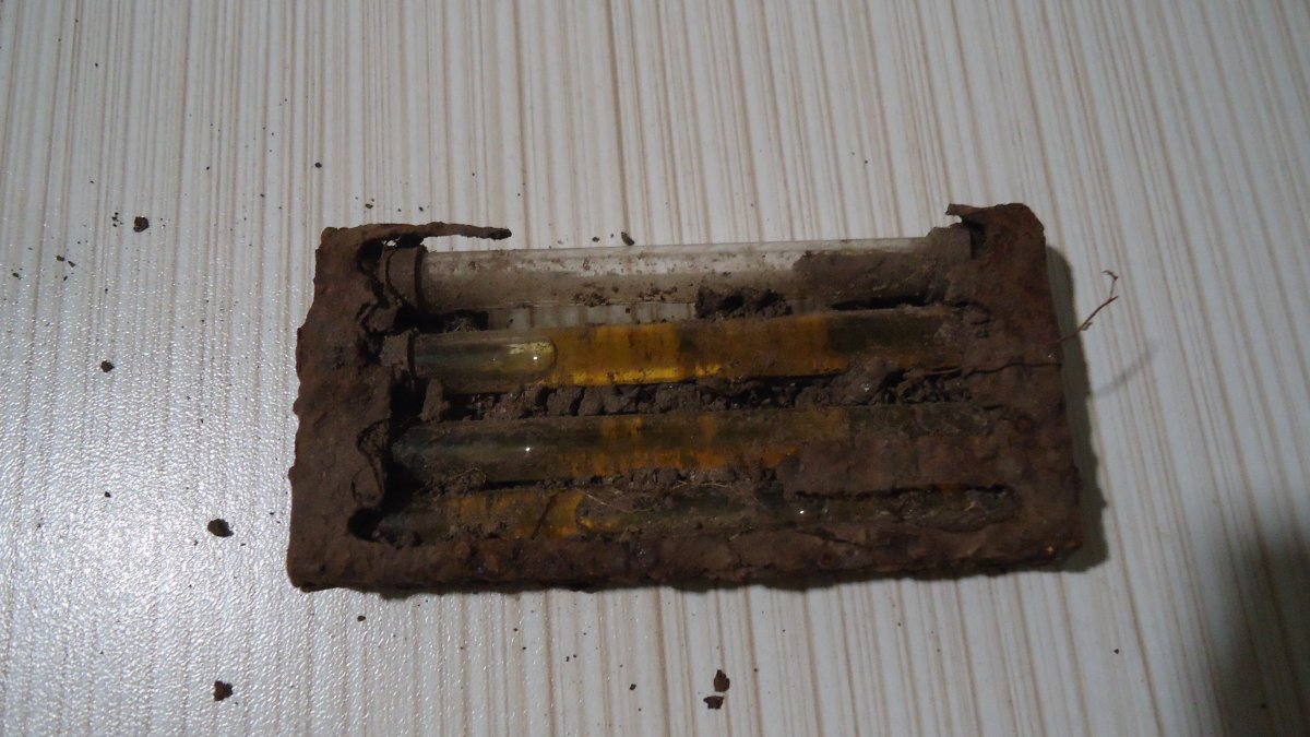 Доброго времени суток.Друзья подскажите пожалуйста что это.Внутри жидкость похожа на веретёнку( масло ).Колбы стекло.Одна пустая в остальных колышется жидкость.