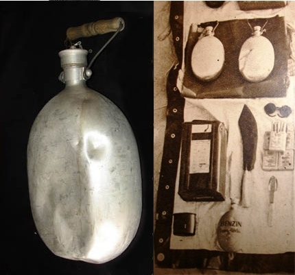 Фляга для воды из аварийного НЗ Люфтваффе, ёмкостью 2.25 литра:https://reibert.info/threads/fljaga-2-25-litra.77171/ Австрия недавно продано:https://reibert.info/threads/avstrijak-1914.632118/, более длинное горло на фляге их разновидность,разные года выпуска.