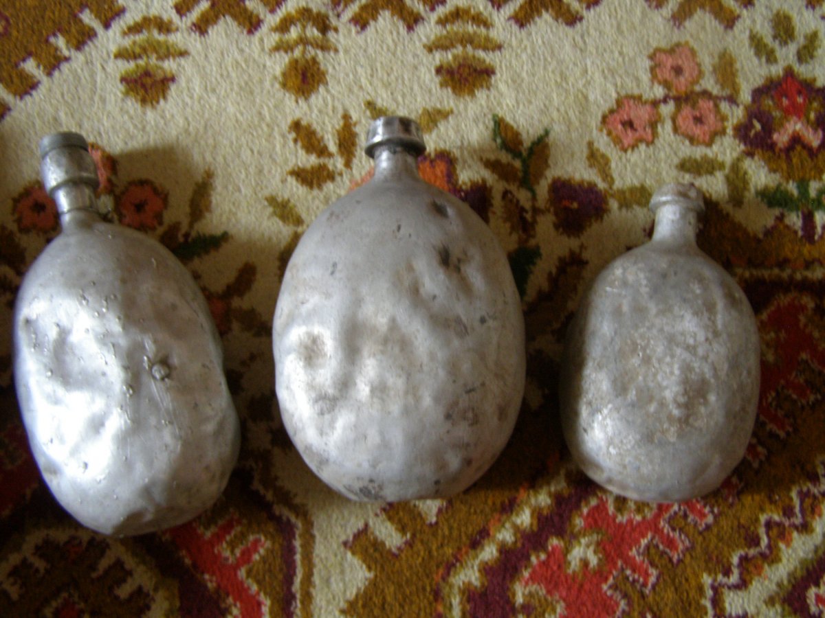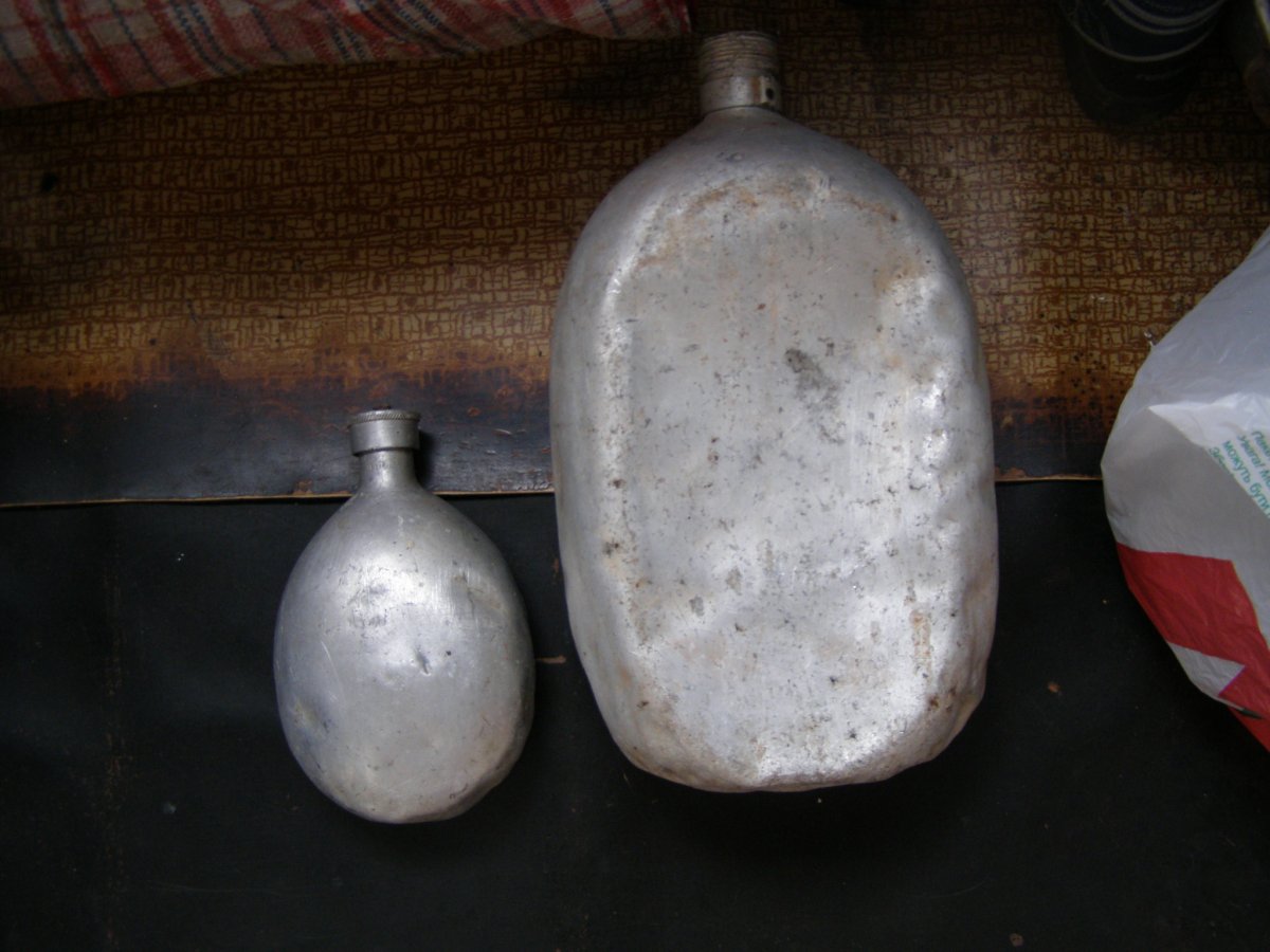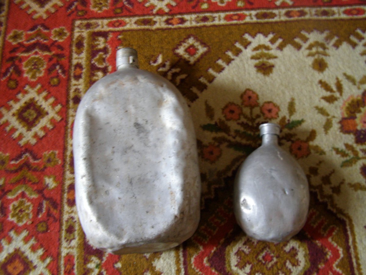 Прошу подсказать по определению и стоимости этой нем. фляги-бидона (что оно вобще за зверь) вляги толи РККА толи РИА на 2-а литра под пробку (по центу между медиком и пехотной) а также это что более ранняя Австро-Венгр (слева более длинное горло)