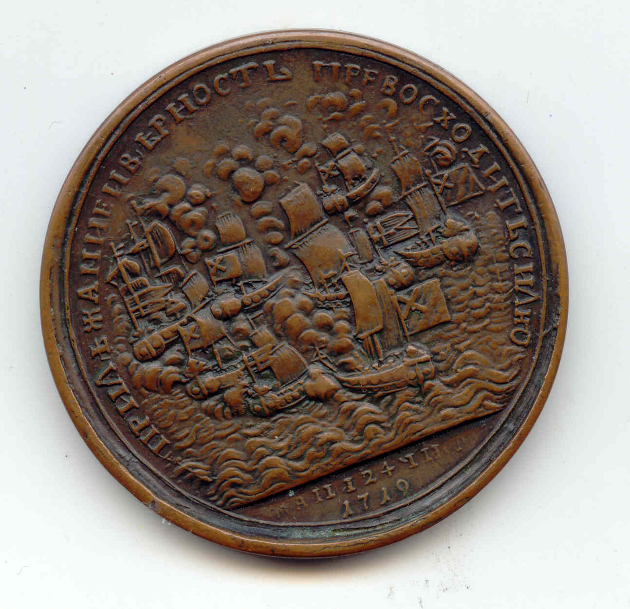Есть!Настольная медаль "В честь победы над Турцией в 1770 г. " Л.ст.:"Подпись медальера под портретом "Exlein"(Экслейн). Медь, 54,30 гр. Диаметр 45 мм. Состояние XF. Смирнов№267, Diakov#149.1(R2). Очень редкая оригинальная медаль XVIII века. Только у меня надпись под портретом Иванов.