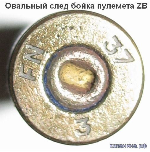 Я не оспариваю, что это отстрел с ЗБ. Только утверждаю, что в процессе использования пулемёта возникали мелкие проблемы в работе и их устраняли в оружейных мастерских на фронте. Вот и край ударника могли "подрехтовать" и оттиск получался "не фабричным".