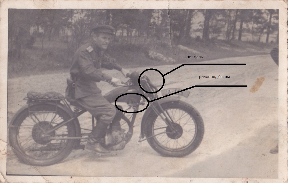 Хорошая подсказка, действительно очень похож. Вот он еще http://images.yandex.ua/yandsearch?...os=0&rpt=simage&lr=10363&noreask=1&source=wiz Есть одно но - наличие фары и ручной рычаг переключения скоростей, установленный непосредственно на коробке передач. По названию Л-300 я надыбал еще два вида мотоцикла, которые как по мне тоже внешне подходят - DKW Luxus 200 Special и DKW KM-200. http://www.dkw-motorrad-club.de/bikes/v45/bilder/Luxus-Spezial-200-0-1930.jpg http://www.moto-garage.ru/media/.gallery/main390.jpg. Опять таки, в DKW Luxus 200 Special такой же рычаг, как в Л-300, а в DKW KM-200 рычаг как на фото. Иных схожестей или расхождений по другим моделям мне найти не удалось. Возможно это гибрид, сработанный гансами и попавший в наши войска в таком виде как на фото. Напрашивается вывод - фото сделано за пределами СССР, иначе на кой ляд Вермахту тащить за тридевять земель чудо тридцатого года выпуска? Другие мнения приветствуются.