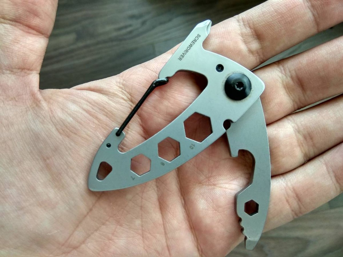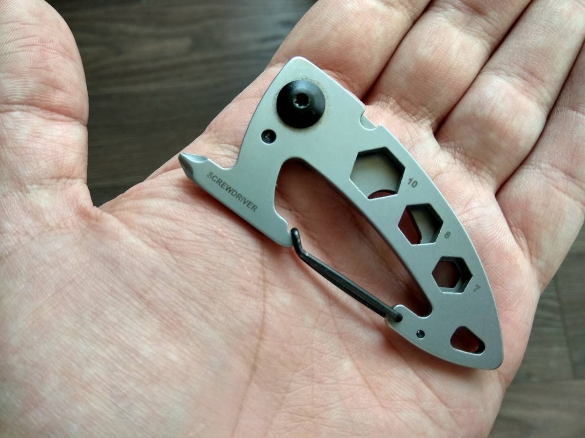 Вот такой, по назначению ни разу не использовался. Накладные 6-игранники, отвертка обычная и филиппс, открывашка для бутылки, отверстие для подвеса, карабин. 400 грн