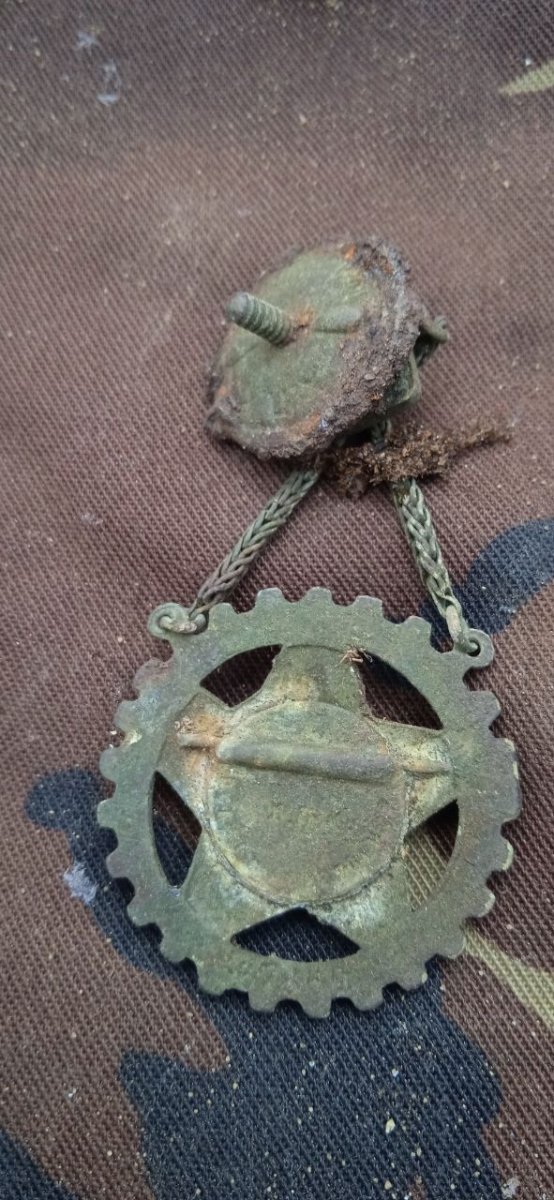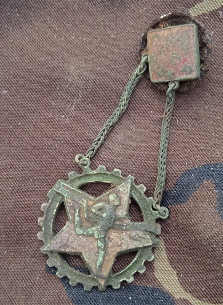 Доброго времени суток, камрады. Пишу прямо с копа. Попался такой вот знак Вижу впервые, что б ещё на цепочке и закрутка.. В общем, фото с холода, извиняйте за качество, хотелось бы до дома узнать, что за Он..??