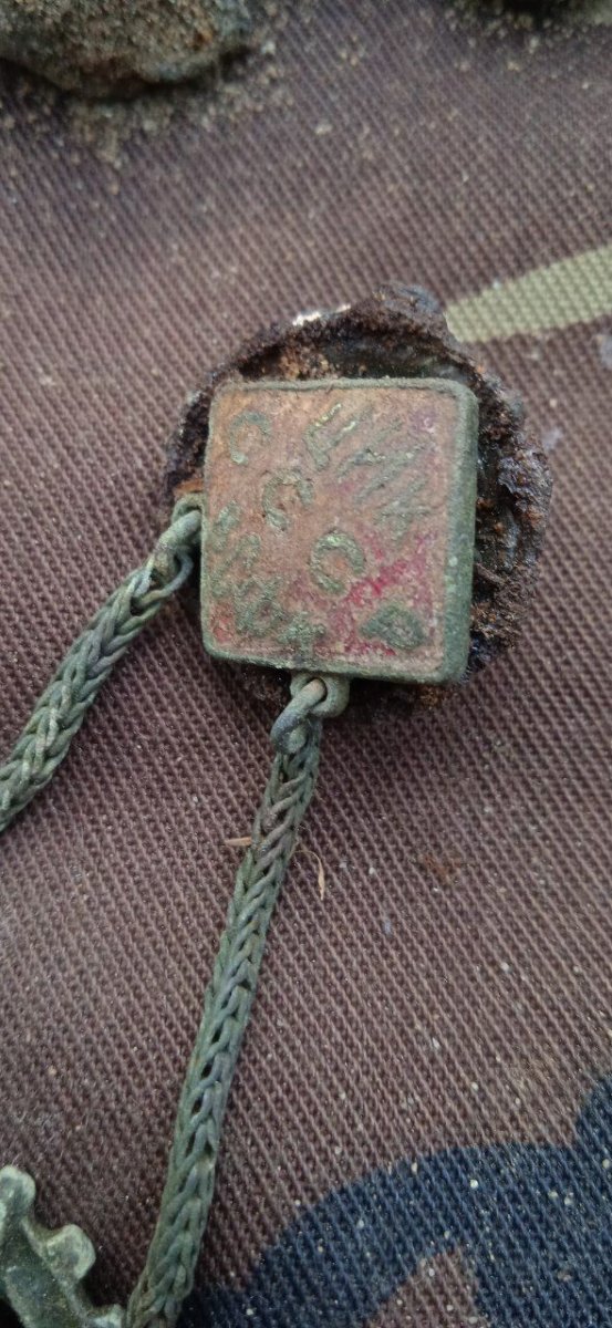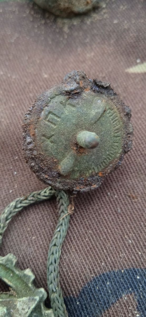 Всем дзякуй за ответы. Приехал, помыл под водой просто. Сфотографировал более-менее нормально. Ещё больше удивился, что она номерная - номер 587869. Ну и бонусом, фото с сопуткой)) вообще локацию мы называем "Шрапнельный Лес", не стоит, думаю, объяснять почему?) В подавляющем большинстве своем, находки там по Советско-Польской войне 1920г..