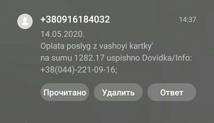 Это из моей коллекции. Пришло на номер не привязанный ни к каким картам, сервисам итд. Рекомендую перед всеми действиями связанными с финансами, после звонков и СМС с незнакомых номеров предварительно проверять в Гугле эти номера, номера кредитных карт при сделках в интернете с непроверенными людьми т.к. если вы столкнулись с серийным мошенником, то наверняка о нём будет какая то информация на специализированых сайтах, отзывы на интернет площадках