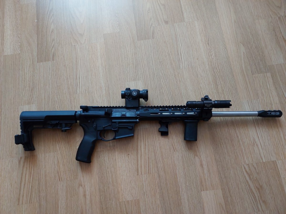 могу разукомплектовать (без цевья со всем навесом, усм с ар15, a2 вместо тега, без прицельных, комплектный магазин) и отдать за 30 000 грн