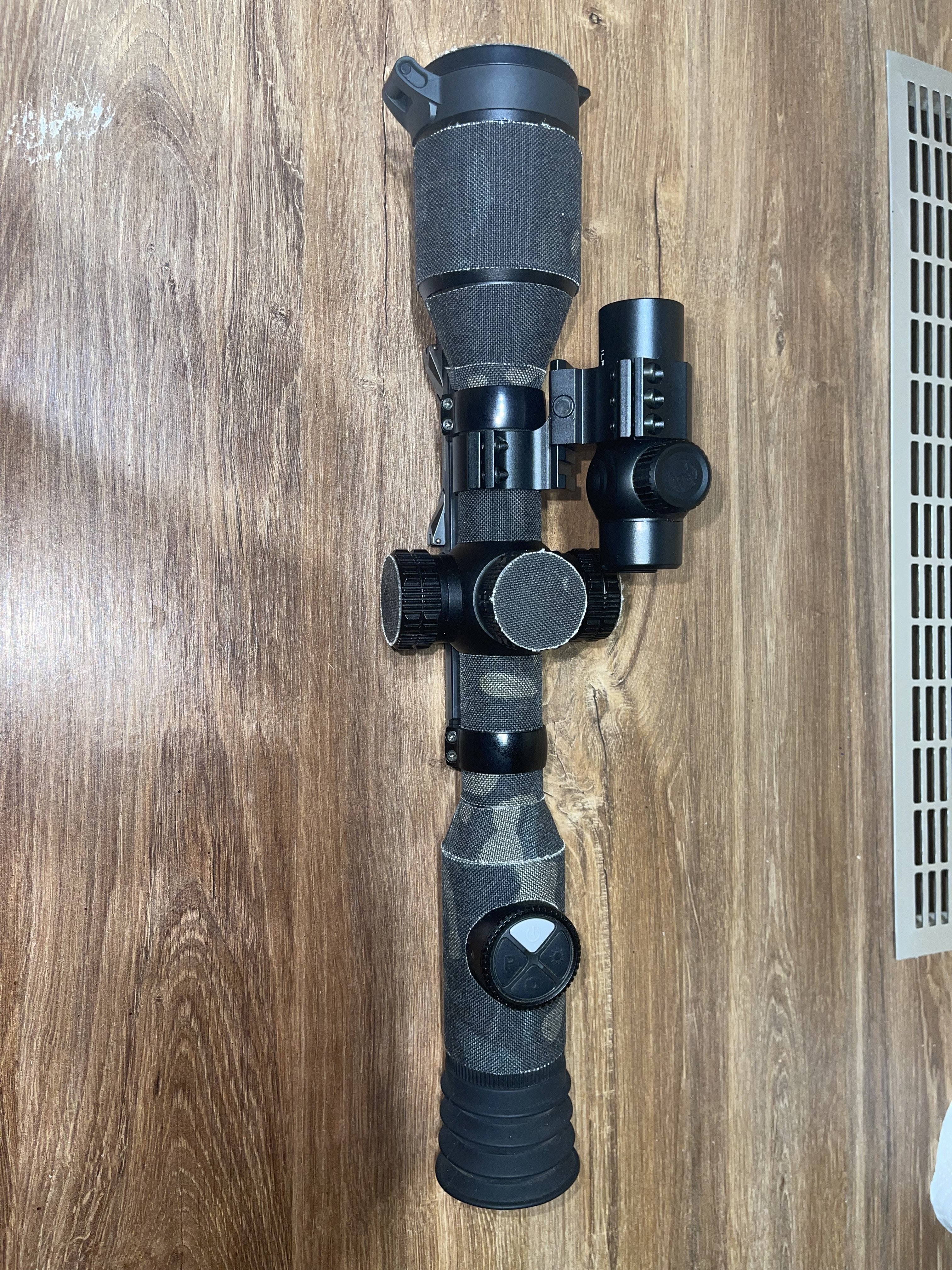 Тепловизионный прицел Iray Tube TH50 V2, с дальномером. Идеальное состояние, без царапин и повреждений. Дальномер установлен на жесткий, быстросъёмный кронштейн (родной кронштейн в комплекте). Идеальная картинка, авто баллистика. Причина продажи- переход на 60-ю линзу. Продажа комплектом. Цена 3100 у.е.