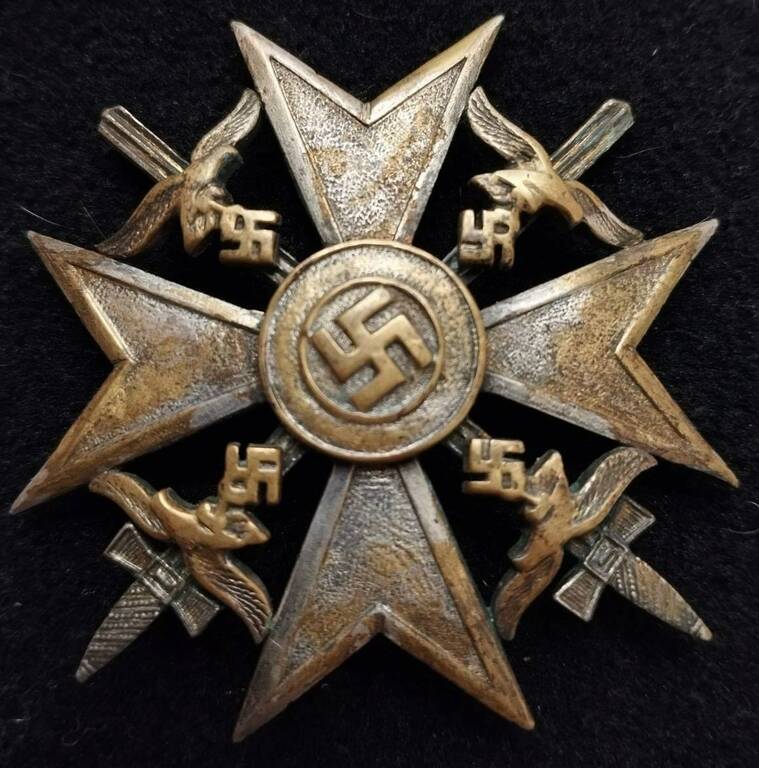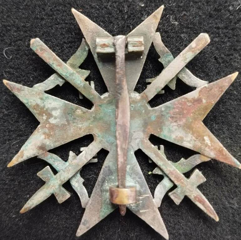 Коллеги, приветствую. Не так давно на «соседнем форуме» в продаже «отметился» вот такой вот «испанский крест» с мечами. Снять с отрогов с помощью жалоб его удалось, но, судя по поведению продавца, крест и дальше «будет искать» своего нового хозяина на других площадках. Собственно по предмету: - Rudolf Wächtler & Lange KG никогда не производил «испанских крестов» - Иголка, ловящий крюк, клеймо не поддаются никакой критике - Судя по фото, надель системы - она вылита вместе с основой креста - Патина - «кошачий лоток» В общем, будьте бдительны. С уважением, Илья