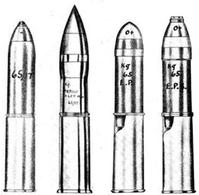 [IDÉZET="Egy madár, hozzászólás: 16706346, tag: 151625"] 65 mm-es lövedékek a 65/17-eshez. Balról jobbra: Nagy erejű robbanóanyag, páncéltörő , EP 'Effetto Pronto' (üreges töltet) és EPS 'Effetto Pronto Speciale' (üreges töltet) További információ itt: (regisztráció szükséges): http://www.milisttory.net/forum/showthread.php?t=24576 65/17 páncéltörő lövedék Súly: 4230 g. Hossz: 280 mm. Töltés: 161 g olvadt TNT. Biztosíték: ütőgyertya, BP mod. 09 Szívesen.[/IDÉZET] Thanks, i also found this picture, but i am search for sectional drawings. I registered to the forum that you mentioned but it cant load the pictures.