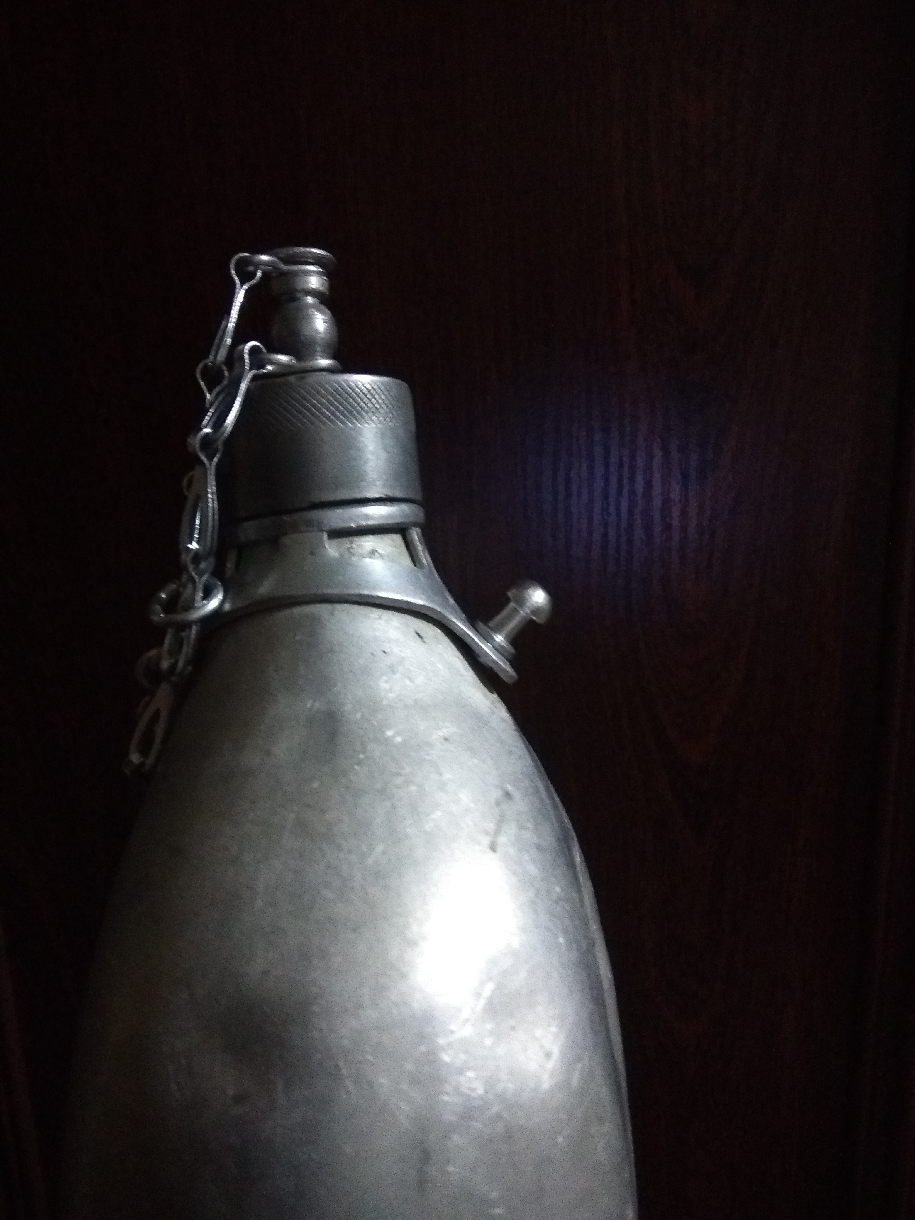 В моей коллекции к примеру имеется несколько румынских фляг и цепь практически на всех утрачена - лишь сравнительно недавно мне наконец то удалось найти фрагмент со сравнительно неплохо сохранившейся регламентной цепочкой. Теперь знаю размеры, вид цепи.....не знаю правда длину, но уже хотя бы есть "от чего плясать" в поисках.