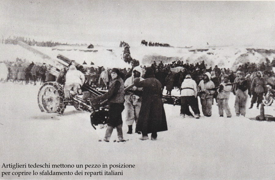 Иллюстрация к воспоминаниям по снегоборьбе на la strada. Хотел бы я увидеть фото с немцами, которые выделяли бы на это дело полевую кухню... Похоже, у итальянца слева за плечами СВТ-шка...