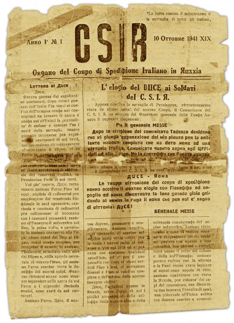 Потерялось в моем архиве фото итальянцев перед вывеской типографии, где печатали газету C.S.I.R. кириллицей, но зато нашлось фото из самой типографии и удалось установить, что типография была в Синельниково (Днепропетровская область). На последнем фото видны разрушения. Видать наши взорвали перед отступлением.