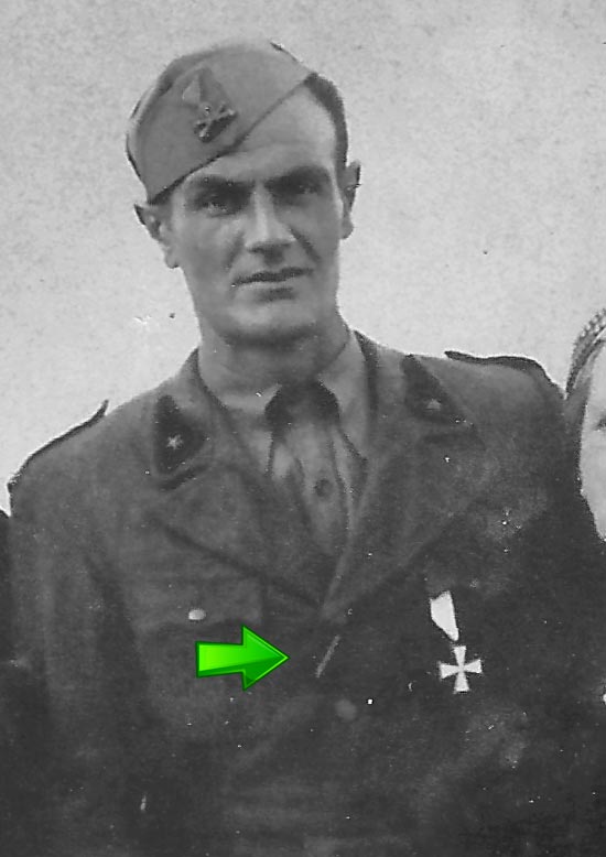 Теперь дальше, есть техника, я пока еще не в курсе дела, увеличить нужные фрагменты фотографии. Это все я смотал у итальянцев. Посмотрите как они выделяют детали для обсуждения. На мундире у артиллериста Ледовый Крест - ясно, что это только за кампанию в России, но зеленой стрелочкой выделили в петлице и немецкое Мороженое Мясо, и самое главное читается номер артиллерийского полка дивизионной артиллерии. Сравните теперь кокарду на последней и первой фотографии.