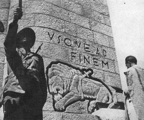 Камерад! 1. Вот еще различная атрибутика Milizia Confinaria. Есть и ваш знак. 2. А это, помните, когда-то обсуждали ваш знак за окончание кампании в Восточной Африке? Тоже знак чернорубашечный. Здесь он исполнен во всю ширь, в бетоне.