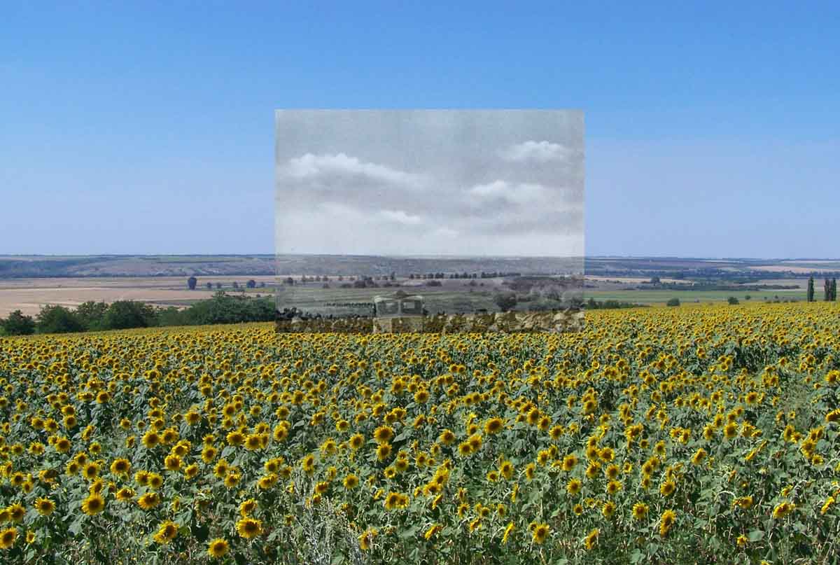 Долина реки Ингул, Баратовский луг, здесь итальянцы проходили 15 августа 1941г., когда шли из Привольного в Новый Буг. Совремённая съемка велась с дороги, которая проходит слева; ландшафт очень похож с тем, что на фото из книги. Хотя это только предположение, таких совпадений по Югу Украины может быть в десятках мест.