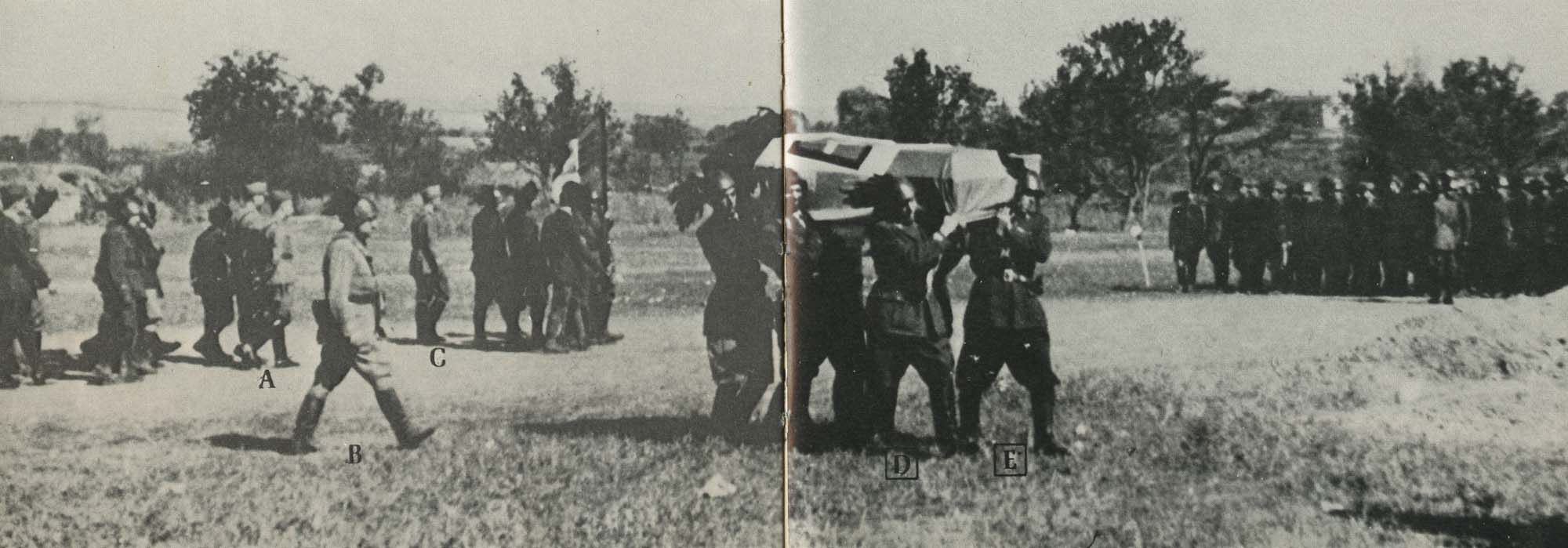 Церемония похорон полковника Aminto Caretto. Буквами на фотографии помечены: A - capitano medico Strazzulli; B - tenehte Pisani; C - sottotenente Raimondi; D - sottotenente Ferrari; E - sottotenente Fannucchi. Могила полковника Aminto Caretto пост #343 http://reibert.info/forum/showthread.php?t=12526&page=22