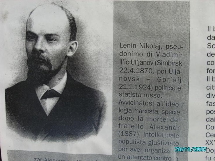 Я озаботился Ворошиловградским памятником Ленину в Кавриаго и... НАШЕЛ!!!! Надпись под бюстом... Свою коммунистическую ориентацию Кавриаго сохранил до 1980-х годов, и ленинский бюст посреди города все время служил выражением политических симпатий его граждан.(Почему италъяшки его Николаем назвали-НИЗНАЮ!!!!) http://natalina.moifoto.ru/54334/s3