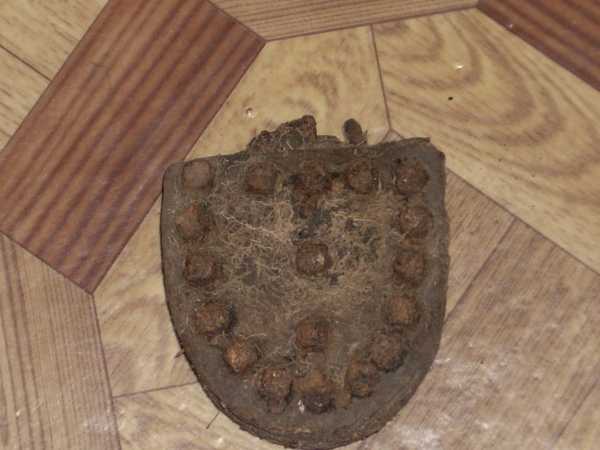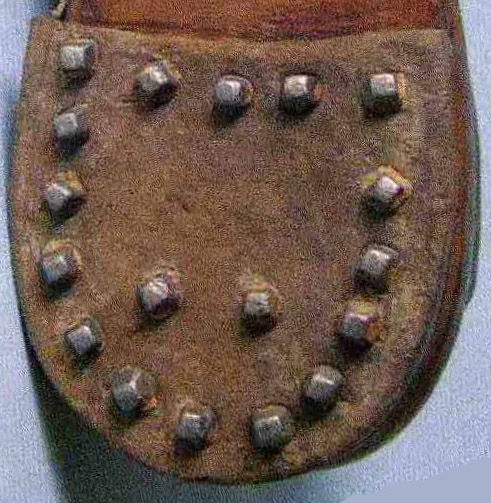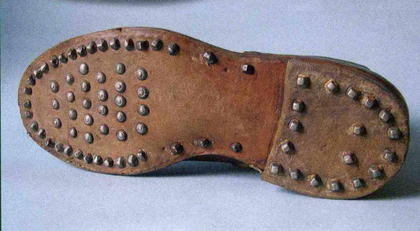 Вот отдельно каблучок на немного ношенном ботинке и на ботинке, пролежавшем в земле 70 лет. Те же 18 шипов, только, очевидно, были варианты с креплением центральных двух.