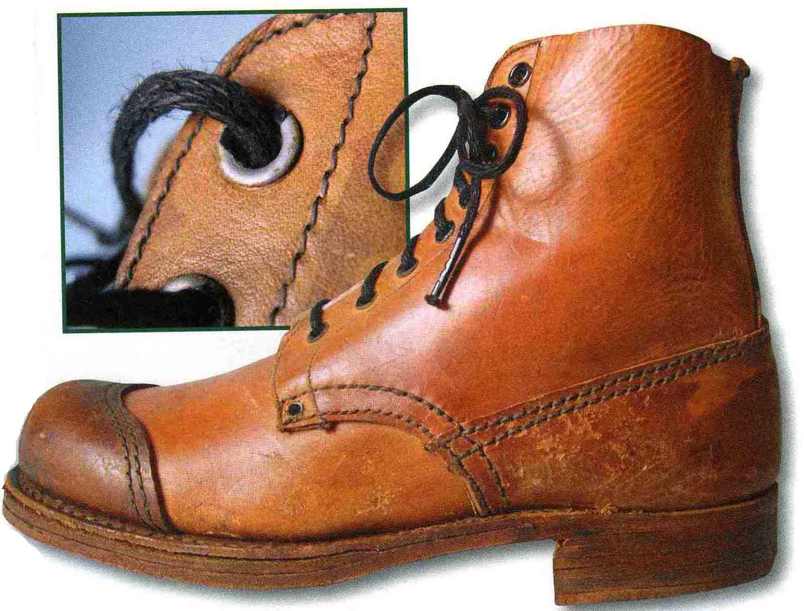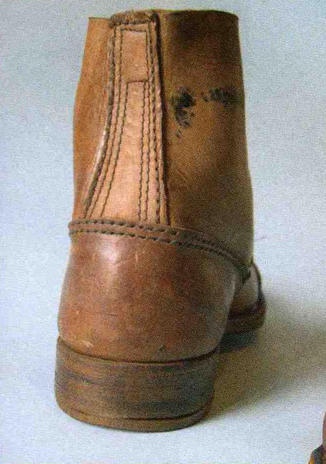Вот армейские пехотные ботинки образца 1932г. из яловой кожи с усиленной пяткой и носком, почти не отличаются от ботинок образца 1912г. Такие ботинки наряду с ботинками образца 1924г. использовались в России.