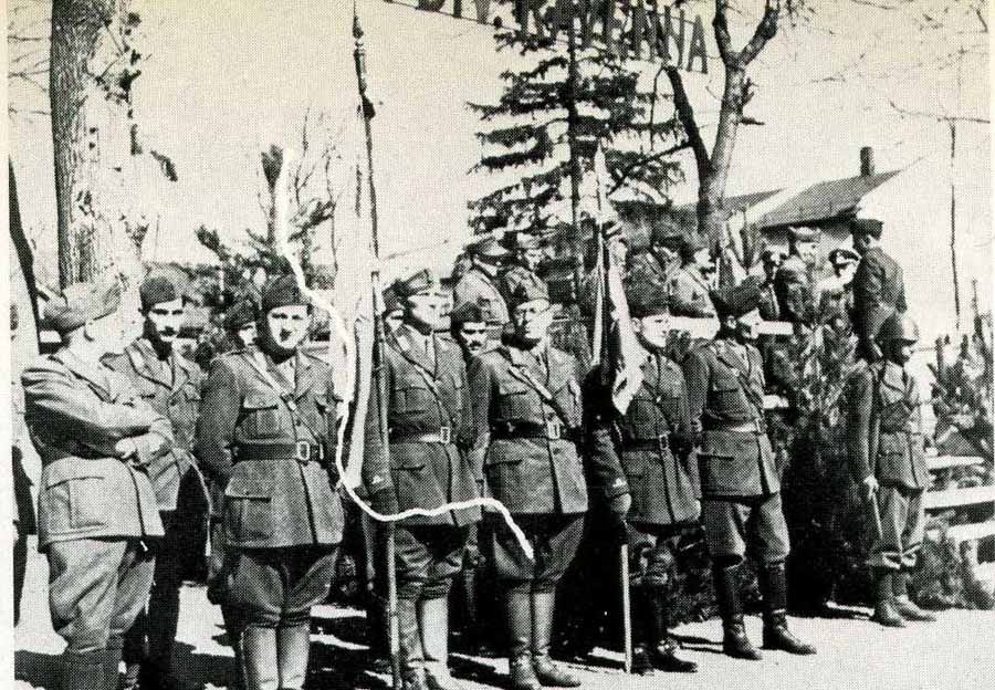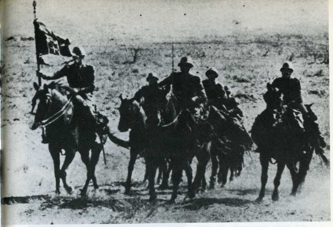 Вот интересное фото - кавалеристы Savoia Cavaleria с полковым знаменем и государственным флагом. Полковое знамя (маленькое) было вывезено в Италию и там хранится в каком-то местном музее.