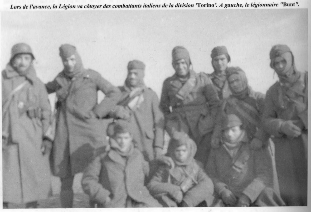 Вспомнил, что в книжках, посвящённым 373-му пехотному батальону (Валлонский легион), было что-то про итальянцев. В целом, итальянцы были первыми иностранцами, кого валлоны встретили на своём пути (позже ещё хорваты были). Итальянцы в начале ноября 1941 г. установили контакт с прибывшими валлонами, которым надо было топать в район реки Самары, который, как пишут западные историки, удерживали итальянские 9-я (Пасубио) и 52-я (Торино) моторизованные дивизии. У валлонов был свой тяжёлый марш к линии фронта, по времени примерно от начала ноября до начала декабря. В обозначенный период валлоны и встретили итальянцев. Один из легионеров писал, что они остановились на ночёвку в Новомосковске, когда узнали, что рядом стоят итальянцы, после чего многие франкофоны пришли к мысли "Там, где итальянцы, там тепло, есть чего поесть и чем запить". После чего всю ночь провели, болтая с "камрадами латинской расы", запивая это кьянти и наслаждаясь "средиземноморским гостеприимством". Судя по всему, позже также были контакты с итальянцами, которые несли мелкие потери от партизан (как и валлоны). На фото валлоны помогают хоронить итальянцев; по времени сложно сказать, тоже ноябрь-декабрь 1941 г. Последнее фото более чётко идентифицировано.