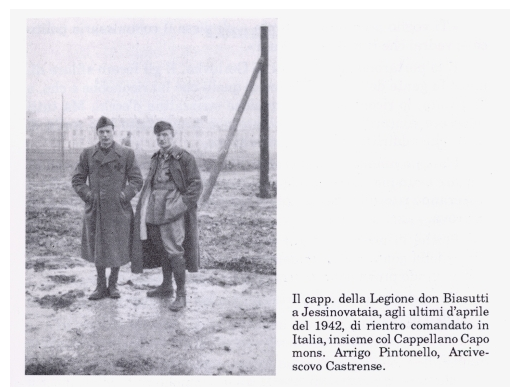 [QUOTE="vadik.73, Если кто может,переведите пожалуйста что здесь написано.[/QUOTE] Капеллан Легиона дон Biasutti в Ясиноватой, в последних числах апреля 1942 года, перед возвращением на службу в Италию, вместе с Главным капелланом монсеньёором Arrigo Pintonello, Архиепископом Военно-полевым.