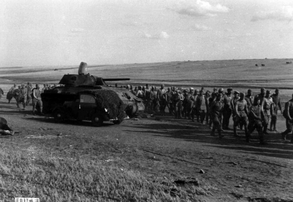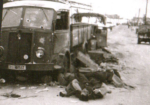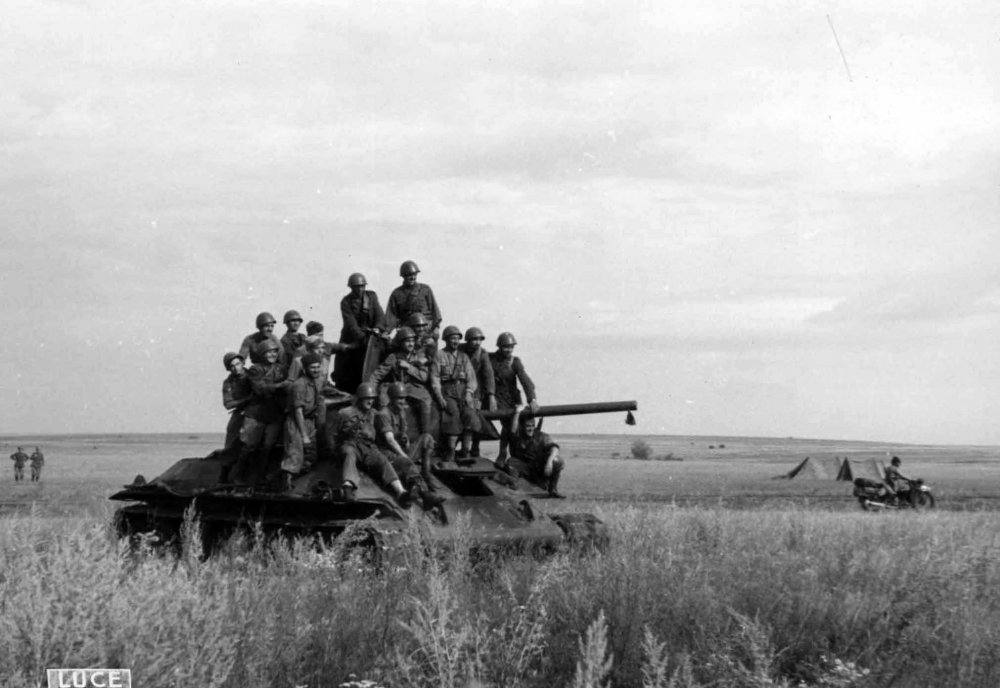 Скорее всего, советские танки "проутюжили". Вперемешку с фотографиями разбитых итальянских грузовиков идут снимки подбитых танков: