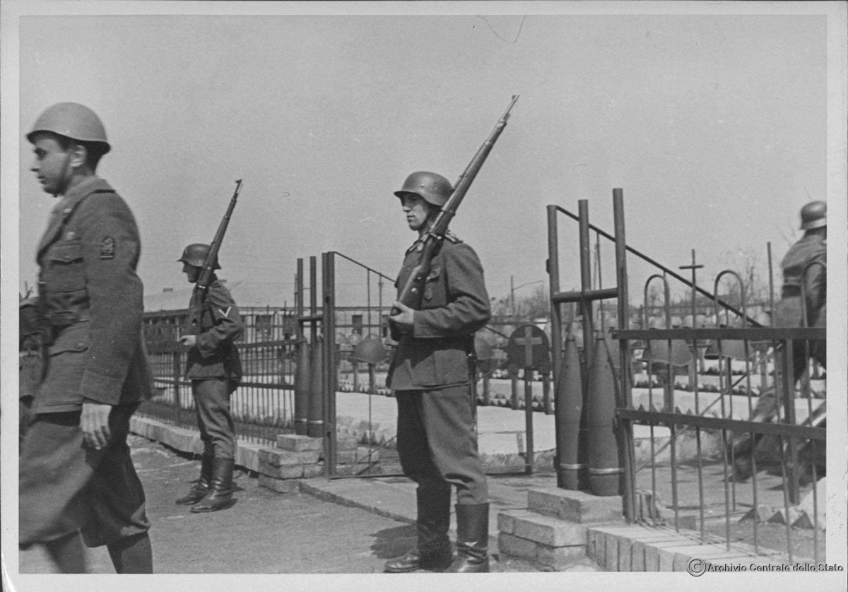 Пехота дивизии «Sfrorzesca» уничтожает символы большевизма в русском городе летом 1942 г. Итальянцы в городе Новомосковск в Украине в 1941 г. Итальянская пехота в Сталино празднует победу. Украина, 1942 год. Где-то в России. Отсюда https://www.facebook.com/groups/480769958794059/?ref=group_header
