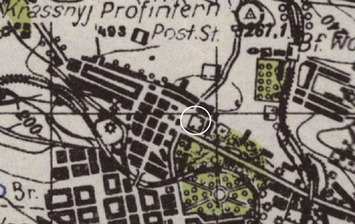 Городское кладбище в Енакиево на Блочке на немецкой карте по состоянию на март 1940 года. Итальянское к нему примыкало непосредственно.