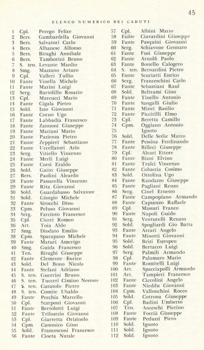 В своих сообщениях доводилось раньше упоминать об этом кладбище: # 1882 https://reibert.info/threads/italjancy-v-rossii.12526/page-76 # 1560 https://reibert.info/threads/italjancy-v-rossii.12526/page-63 Размещу более полные материалы для интересующихся этим вопросом. Из итальянских источников известны планы расположения города Рыково относительно ближайших Горловки, Дебальцево и Хацапетовки (Углегорска). Это первый скан. План расположения самого кладбища в Рыково недавно уже показывал. Это второй скан. На третьем скане план самого кладбища с пронумерованными 379 могилами. Дальше списки со званиями, именами и фамилиями 379 погребенных на этом кладбище. В могилах №№ 75,110,111,112,113,114,187,261,262,278,279,280,281,282,283,305,338,339,340,341,342,343,344,345,346,347,351,362 - были похоронены неизвестные даже на момент похорон итальянцы. На кресте могилы и соответственно на плане кладбища таких захоронений итальянцы пишут ignoto (неизвестный). В основном это берсальеры из 3-го полка дивизии Челере. На этом кладбище отпевали лейтенанты-капелланы Saverio Marchese, Camillo Paris и Edoardo Girardi. Чужого представить Богу согласно обряда они не могли. В этих могилах явно были похоронены итальянцы, католики, в военной форме с итальянскими знаками различия, но, очевидно при них не было именного жетона, и установить имя и фамилию было не возможно. На этом кладбище были похоронены и немцы. Их могилы №№ 239,246,272,273,274,275,276,277,348,349,350. На планах всех итальянских кладбищ итальянцы не указывают их имён и званий а пишут только tedesco (немец). Итальянцы увозили домой только останки поднятых определенных солдат, т.е. останки тех, при ком был жетон и кто определён точно. По первому итальянскому кладбищу в Восточной кампании это в городе Первомайск Николаевской области мне рассказывала женщина-соседка, живущая рядом с этим кладбищем. Фактически оно было в её дворе и итальянцы заручались её соглашением на проведение работ по поднятию своих. Так вот все останки, каждые по отдельности, были помещены в урны, женщина говорила урны были белого цвета, и сверху на каждой был повязан жетон. О другой, противоположной ситуации приходилось читать в наших темах форума. Что-то примерно так: местные жители показывают итальянцам, ведающим подъемом своих, что в конкретной силосной яме, или на краю оврага, стягивали после военных действий и хоронили убитых итальянцев. Да, вскрывают, да останки есть, но при них нет жетонов, они не определены. И хотя на 99,9% известно, что это итальянские кости, итальянцы таких не брали. Таким образом с это кладбища в Рыково не вывезены должны быть 28 выше указанных неизвестных итальянца и 11 немцев также неизвестных, по тому как на итальянском кладбище они без имен и фамилий. Всего получается 39 останков, что примерно стыкуется с числом "в городском военкомате лежат более 40 ящиков с останками солдат"
