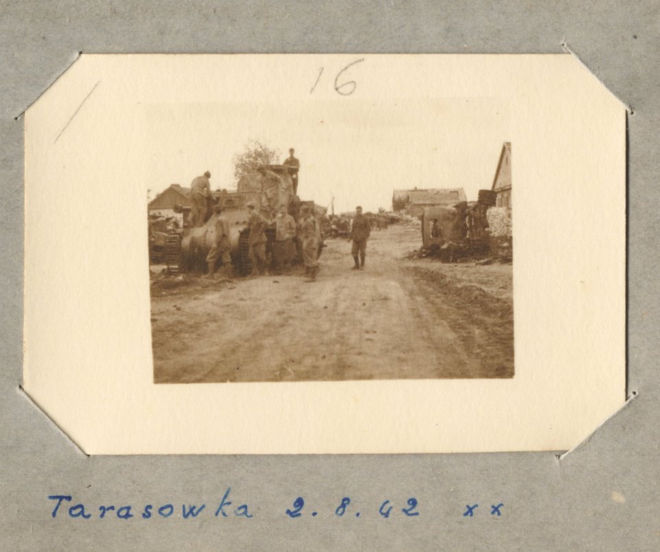 Порылся и я по faсebook’ам, которые здесь предоставил камерад Grand, огромное за это спасибо. Во многом открылся новый материал, который может дополнить многие наши темы, или , благодаря новой информации и фото, усилить предыдущие наши сообщения. Вот на что обратил внимание: Вот эта фотография с датой и местом съемки. Часто по разным темам, по различным поводам проскакивали у нас фотографии битых ленд-лизовских М3средний и вертящихся возле них и по ним итальянских пехотинцев или берсальеров. Оказывается, благодаря этой желтой фотографии в верху темы, мы можем теперь установить место последнего боя “американцев” это с. Тарасовка, очевидно Ростовской обл. Вот другие фотографии, которые собрал из выставленных раньше. Обратите внимание на характерный пейзаж вокруг, хаты с черепичной крышей (хаты не под соломой, а справа и слева хаты именно под черепицей), муры вокруг из белого ракушняка, М3с имеет противовес на орудии в спонсоне, а башня с 37-мм орудием повёрнута влево, посредине улицы лежит на боку сгоревшая полуторка, в глубине улицы стоят наши зенитные орудия, похоже 85мм. , под хатой стоит итальянский FIAT 1100Militare, похоже на нём приехали наши экскурсанты на экскурсию. По некоторым из перечисленных элементов имеем совпадение на этих двух фото. Здесь же на фото за М3с расположен и другой такой же танк, видите там над головами итальянцев просматриваются поворотные башни из второго и третьего этажа “американца”. Он стоит , получается, перед FIAT’ом. А вот другие фото, и танк М3с, очевидно тот, другой. На этом у его орудия которое в спонсоне нет надульного противовеса, но окружающая танк местность та же. На одном из фото видно те же зенитки, стоящие на улице, характерные муры из белого камня, хата под черепицей. И ещё возврат к танку с противовесом на орудии, тот ли это, что и на первом итальянском фото с подписью TARASOWKA 2.8.42. XX, или не тот, а может это какой-то третий, не совсем понятно. Слишком крупный масштаб съемки, нет привязки к окружающим деталям. Вот только мур из белого камня, на одном из фото, показывает, что местность идентична той, что и отснята на предыдущих фото.