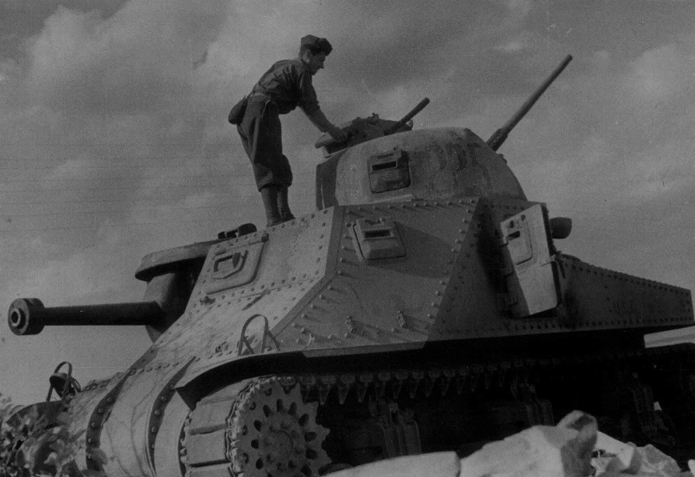 В Тарасовке итальянцы сфоткали как минимум четыре танка М3-средний. Вот снимок двух танков М3, стоящих рядом, с другого ракурса: Это те же машины, что и на фотографиях в начале поста #2028. Вот отдельные снимки переднего танка с номером 255: А это следующий М3-средний, без дульного компенсатора на 75-мм орудии: Дальше итальянцы сняли еще один взорванный М3, он находился дальше по улице, за брошенными советскими 85-мм зенитками, рядом с подбитым немецким Sd.Kfz.251/10: Четвертый танк - с номером 225 и пробоиной в правом борту, скорее всего, находился в том же районе, но где именно - пока непонятно. У этой машины характерная особенность - разные типы гусениц слева и справа: