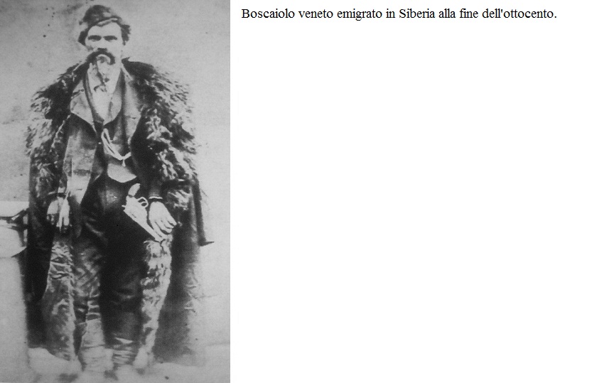 ИТАЛЬЯНСКИЕ ЭМИГРАНТЫ В СИБИРИ В последние двадцатилетие девятнадцатого века происходила сильная миграция, особенно из Венето (в то время одного из беднейших регионов Италии), а также из Трентино, Истрии и Далмации в российскую Сибирь. При поддержке царского правительства начиналась эксплуатация этой обширной территории, богатой природными ресурсами, которая до этого использовалась в основном для изгнания преступников и политических заключенных. Поскольку, несмотря на предоставление больших льгот, российские подданные царя не хотели добровольно селиться в этих негостеприимных местах, колонизация была одобрена итальянскими иммигрантами, которые приезжали на поселение со своими семьями. Венецианцы были подданными Савойи, трентинцы – Истрии, а далматинцы были поддаными Габсбургов, поэтому русские различали итальяноязычных эмигрантов на «подданые королевства» и «подданые империи» в зависимости от их национальности. По большей части это были охотники, лесорубы и шахтеры, которые селились в отдаленных местах в глубине страны, бросая вызов враждебной природе, чтобы добыть драгоценное сырье: лес, уголь, серебро. Позже к ним присоединились плотники, краснодеревщики, меховщики и торговцы, в основном из порта Владивосток и других прибрежных районов. За десять лет эти эмигранты заняли важное место в сибирском обществе, но после Первой мировой войны и из-за потрясений, вызванных революцией и последовавшей за ней Гражданской войной, большинство из них предпочли репатриироваться в Италию вслед за итальянскими антикоммунистическими экспедиционными силами в Сибири. Но некоторые из тех, кто жил в изолированных районах или женился на русских женщинах, не хотели или не могли вернуться в Италию, и разделили судьбу русского народа и в конечном итоге натурализовались в Советской России. Это объясняет, почему некоторые солдаты сибирских войск на Дону обращались к нашим альпини на венецианском диалекте, будучи детьми или внуками этих эмигрантов.