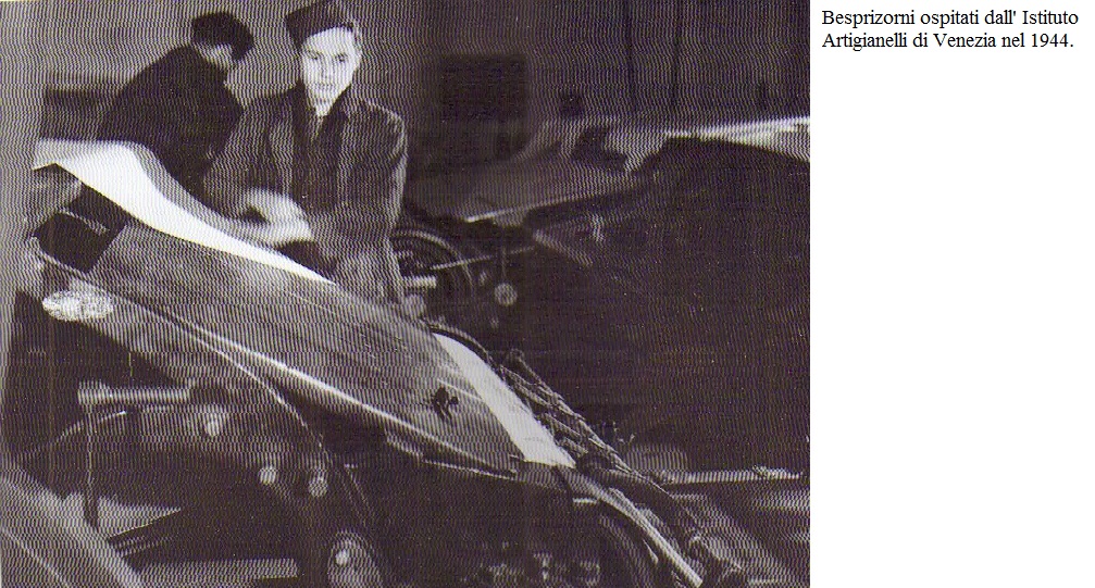 Беспризорники в Италии 1943/1945 Прибыв на перевал Бреннер поездом, беспризорники оставались в фильтрационных лагерях разбитых в Альто-Адидже, вместе с выжившими после великого отступления нашими солдатами, проведя там период изоляции. Некоторые из более старших мальчиков выразили намерение присоединиться к казакам Отряда Кампелло (о них мы уже говорили) и были отправлены в военное училище Королевской армии. Остальных доверили профессиональным религиозным институтам в Риме и северной Италии, чтобы они могли научиться ремеслу. После перемирия некоторые пленные в итальянской форме были депортированы в Германию вместе с IMI, но по большей части они записались (более или менее добровольно) в немецкие части, в R.O.A. Власова или присоединились к казакам Краснова в Карнии. Кто-то даже попал в Вооруженные силы Итальянской Социальной Республики. Фактически, несколько беспризорников, которые 8 сентября 1943 года все еще находились в Вероне с железнодорожными рабочими Nucleo Tradotte Est, только что вернувшимися с восточного фронта, присоединились к добровольчекому батальону берсальеров «Бенито Муссолини» . (Добровольцы батальона берсальеров Бенито Муссолини) Других использовали немецкие и фашистские шпионские сети для выполнения различных заданий. К примеру в 1944 году в Риме среди информаторов дона Джузеппе Морозини был украинский подросток по имени Петр, который работал провокатором СД. Лишь немногие вступили в Сопротивление или оказались в кругу обычных итальянских уголовников. Во время R.S.I. некоторые беспризорники по-прежнему размещались в Istituto Artigianelli Don Orione в Венеции и проходили в типографии курс для начинающих печатников. (Беспризорники в Веницианском институте Артиджанелли в 1944 году.) (Беспризорники в Веницианском институте Артиджанелли в 1944 году.) (Беспризорники в Веницианском институте Артиджанелли в 1944 году.) Зимой 1944/45 года их снимали операторы кинохроники «L.U.C.E.», штаб-квартира которой была перенесена из Рима в город-лагуну. Эти русские мальчики снялись в кинохронике и в фотосессии еженедельника L’Illustrazione Italiana.