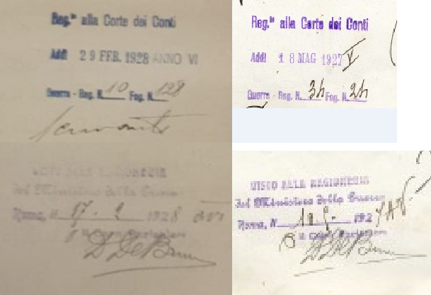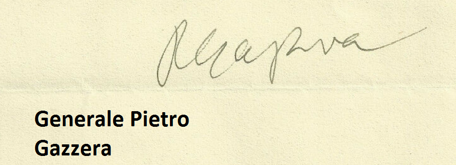 підпис воєнного міністра повинен був бути дуче ( муссоліні 1925 - 1929 ), але це не його підпис. пьетро бадольо (начальник генерального штабу, маршал ) - ні. після дуче воєнний міністр пьєтро гадзера (1929 - 1933) - ні.