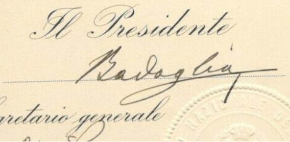 його підпис. в мене сумнів по пьєтро бадольо - його дуче в 1928 році ( рік на документі ТС ) відправив у лівію, хоча точної дати я не знайшов.