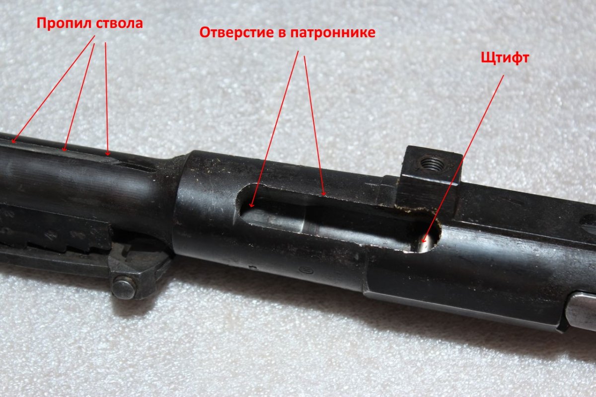 Я вижу штифт совсем в другом месте. Из за штифта патрон в патронник не влазит. Вот то что я вижу Вот сравнение с другой версией Как видно в одной версии что я выложил патрон туда не влазит совсем. в другой версии влазит. А как у Вас?