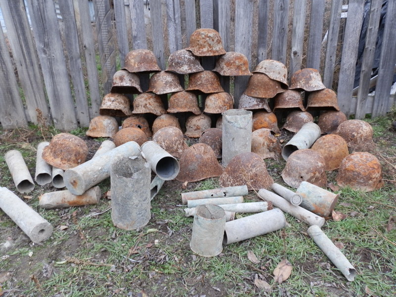 Ну а вот результат за предыдущий и за этот выезды хотелось бы за все выезды сфотографировать, но часть касок кислотится в ванной)))) итог 51 немецкая каска... работа на яме ещё не закончена...