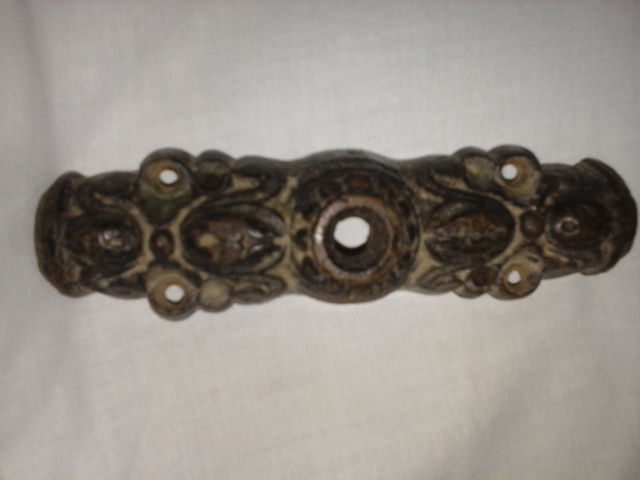 Здравствуйте.Ну видно же,что мебельная накладка:4 отверстия под гвоздики,посреди-отверстие под ручку...