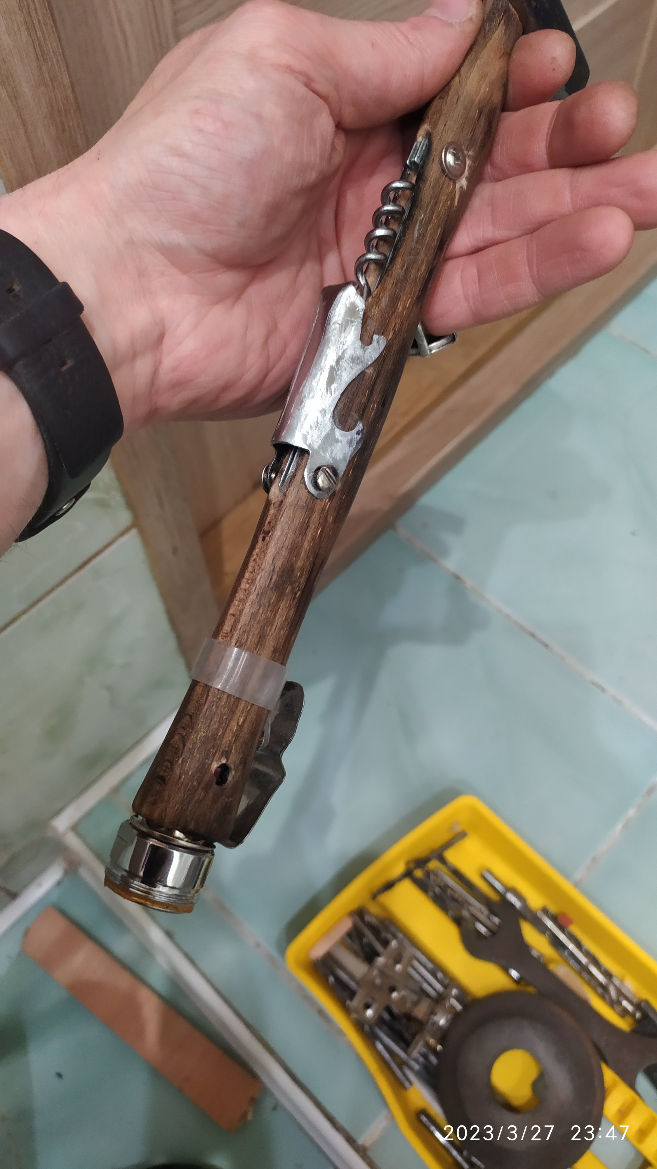 Я планую ще переробити ту пластикову приспособу що контакту не дозволяє самовільно замикатися і добавлю компас, бо як то так віньчик відкрити є чим, а як орієнтуватися після вінішка нема! Непорядок! А далі цей інструмент в стилі стімпанк буде в продажі десь, з площадки де продають подібні "кульбіти фаназії" ...