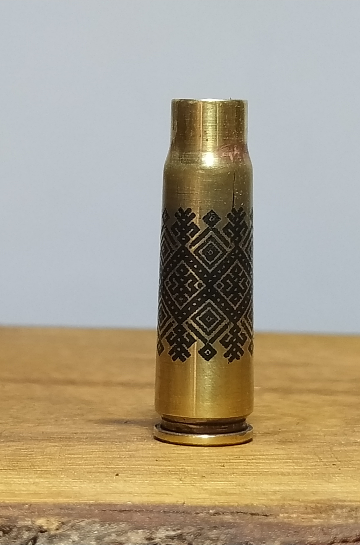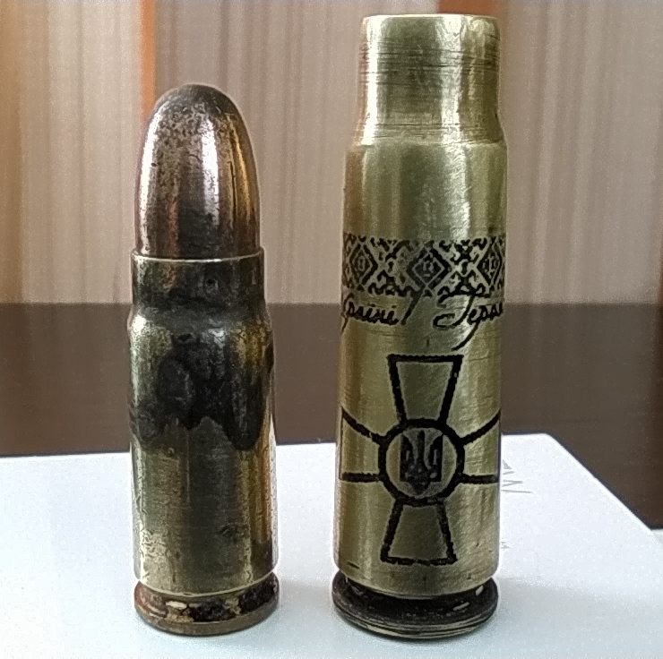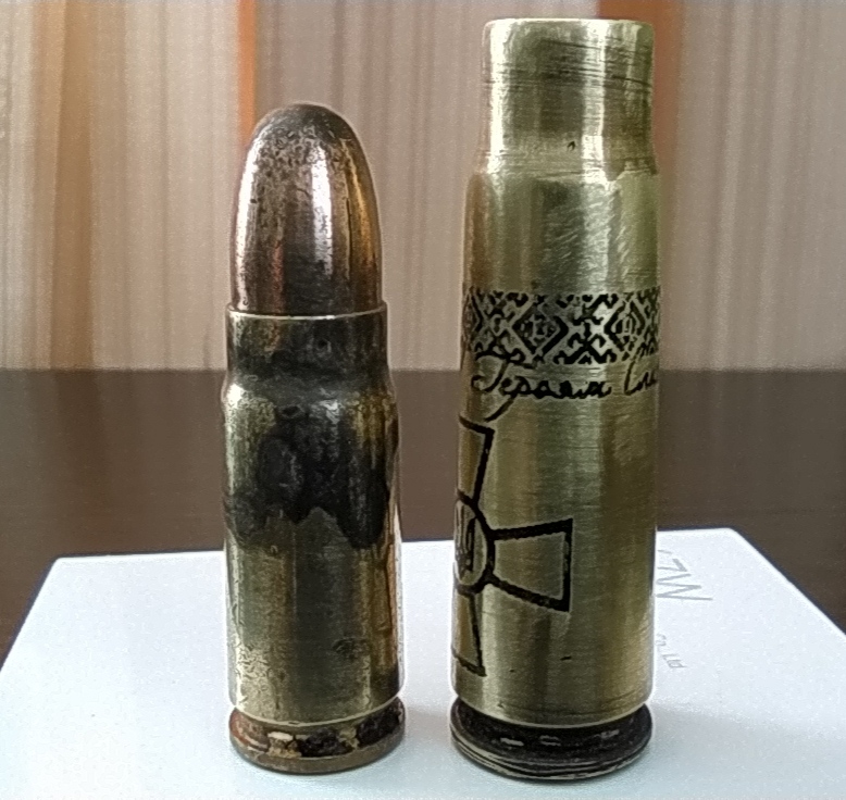 Колись робили замовлення, гільзи з чогось важкого, шість штук, в нікель. Такі гарні стопки вийшли, гріх з таких щось паршиве пити. Жалко фоточок не робив. І все те в ящику гарному. Дуже антуражно.