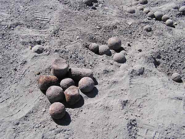 Ядро при попадании в относительно твердый предмет могло не только расколоться, но и со стороны удара слегка сплюснуться, отсюда и не совсем круглое. Еще: частенько ядра казачьих фальконетов имели форму далекую от идеального шара.