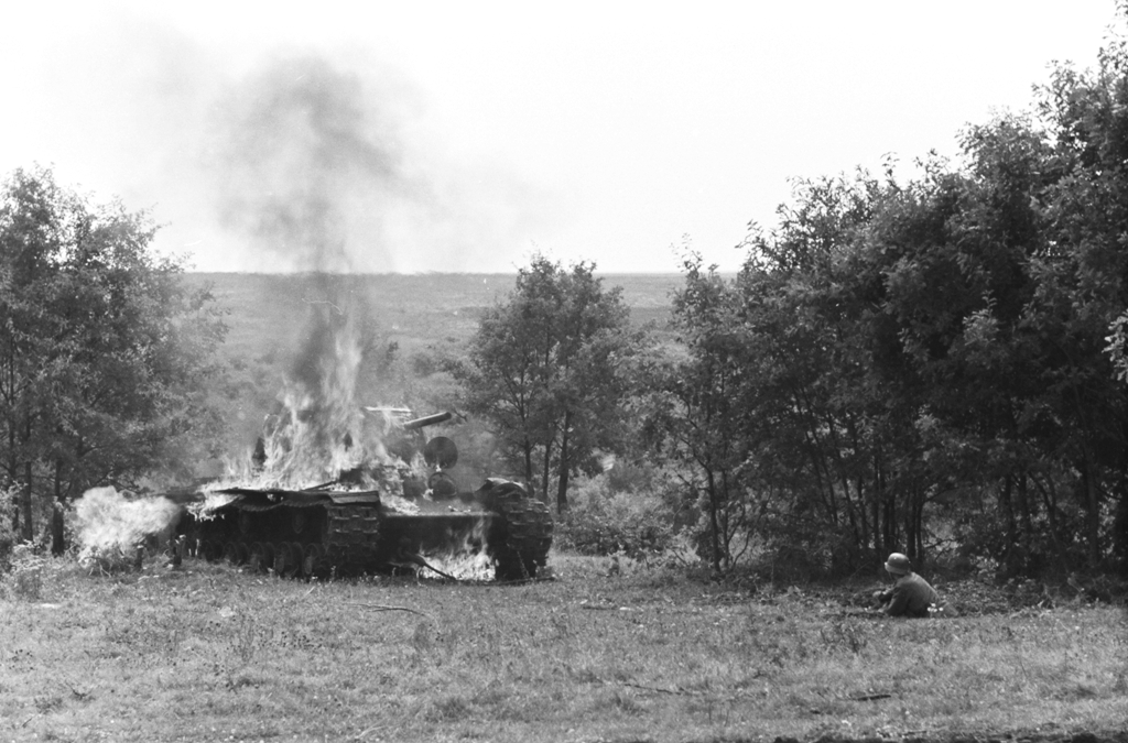 1. 1942 - бойцы РККА зажгли танк коктейлем Молотова 2. 1942 - горит в волховских лесах танк Т-34 3. танк БТ - работа 111 пд вермахта -июнь 1941 4. Танк КВ-1, подбитый в р-не г.Россошь Воронежской обл. 1942г. 5. Танк Т-34 обр. 1941 г. 6. Танк Т-34 обр.1941 г. подбитый в с. Перегоновка Кировоградской обл. Украина, лето 1941 года.