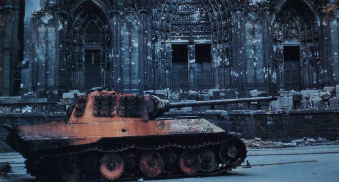 1)"Кёльнская Пантера". Раскадровка с плёнки американского кинооператора. Одна из немногих съёмок настоящего боя во Второй мировой войне. Пантера уже получила два попадания, в отверстии от снаряда видно, что в башне уже начался пожар. Командир Пантеры начинает вылезать из танка.2)Через долю секунды, Першинг выпускает 3 снаряд, добивающий.3)Попадание. Видно как вылезший до этого член экипажа, помогает выбраться механику-водителю.4)Снаряд попадает в надгусенечную полку, командир танка падает обратно в горящий танк. До этого, первым выстрелом ему оторвало ногу.5)В Пантере начинают рваться боеприпасы