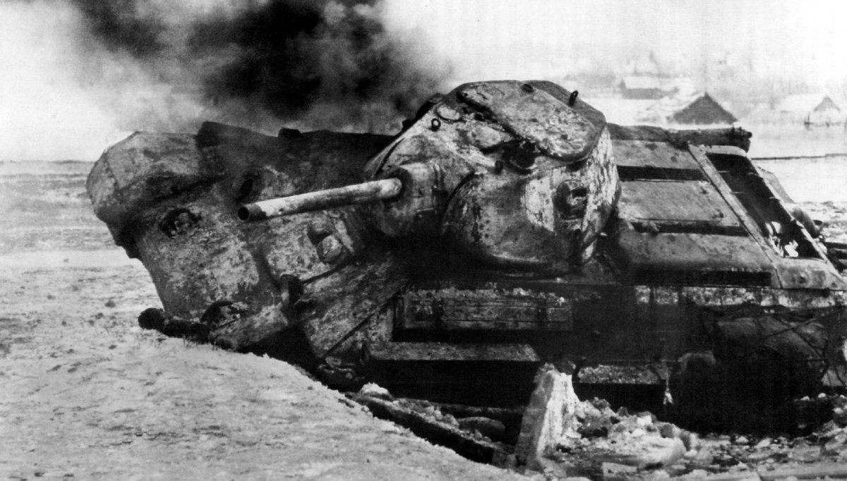 1. Танк Т-34-76 выпуска 1942 года. Центральный участок Восточного фронта, осень 1943 года. 2. Pz.Kpfw.VI «Тигр». Украина, 1944 год. 3. Т-34, подбитый в ходе боя в районе города Клин (Московская область). 1941 год. 4. Горящий «Королевский тигр». 5-7. Советский танк Т-34, подбитый под Москвой, декабрь 1941 года.