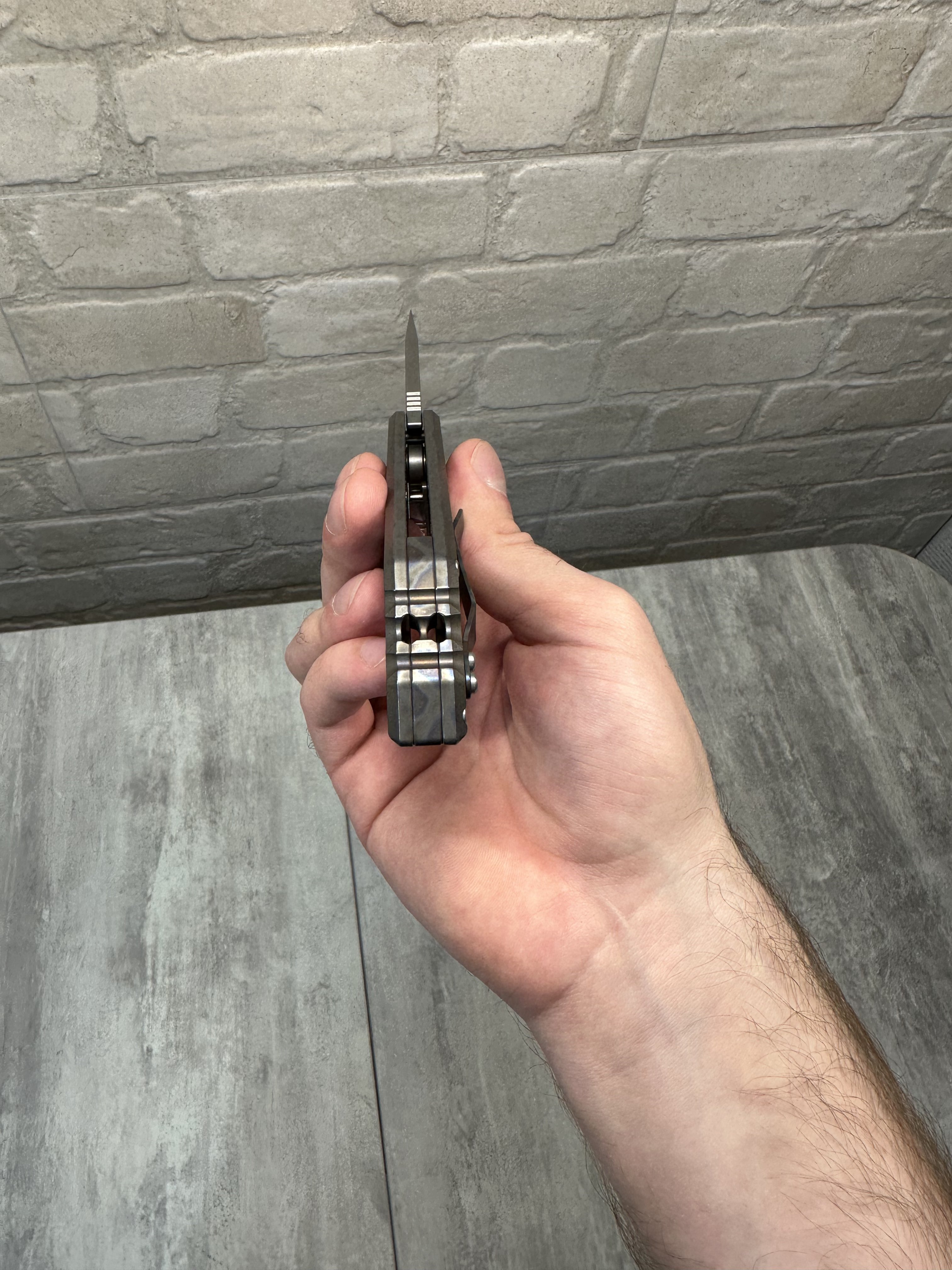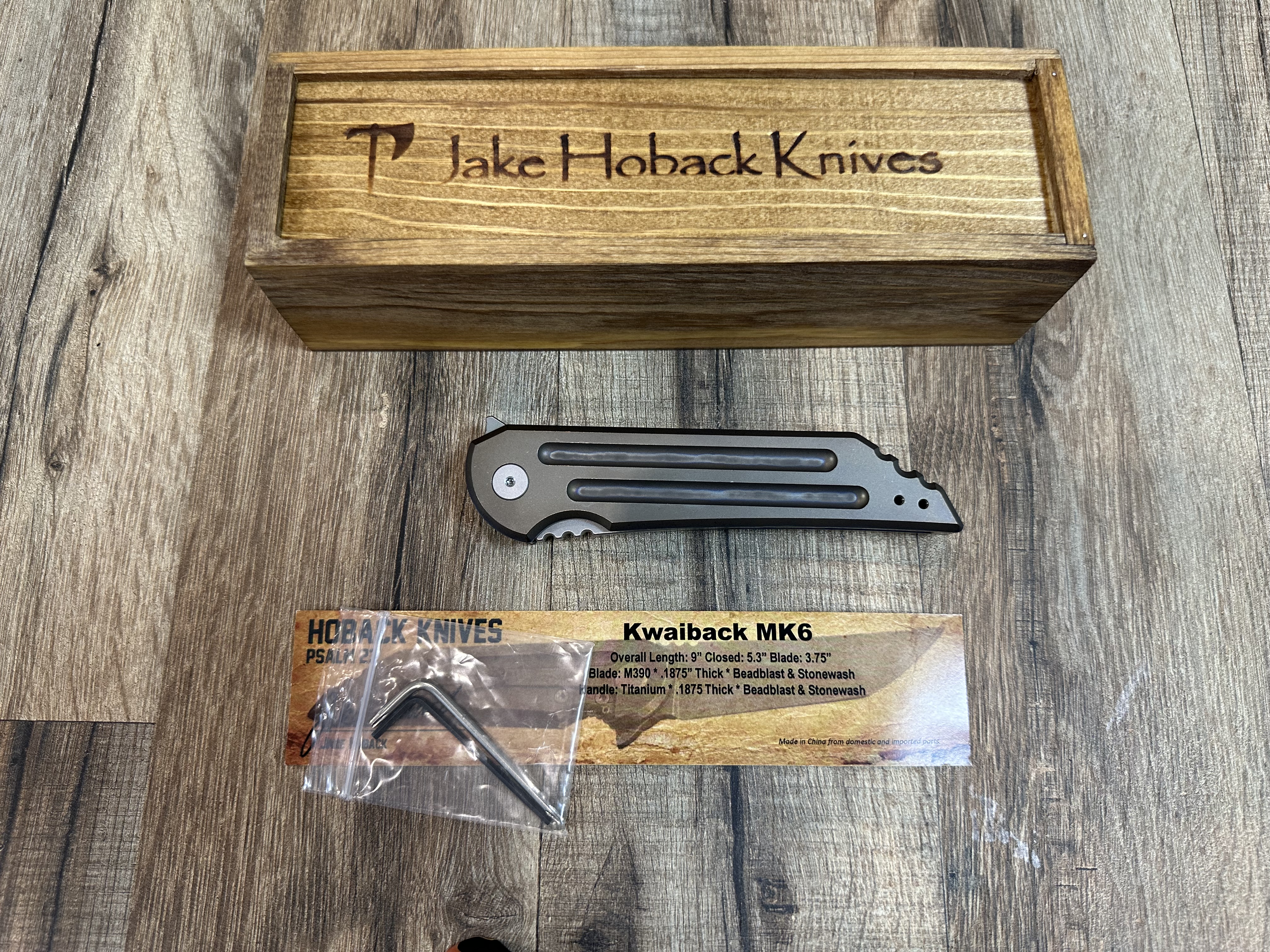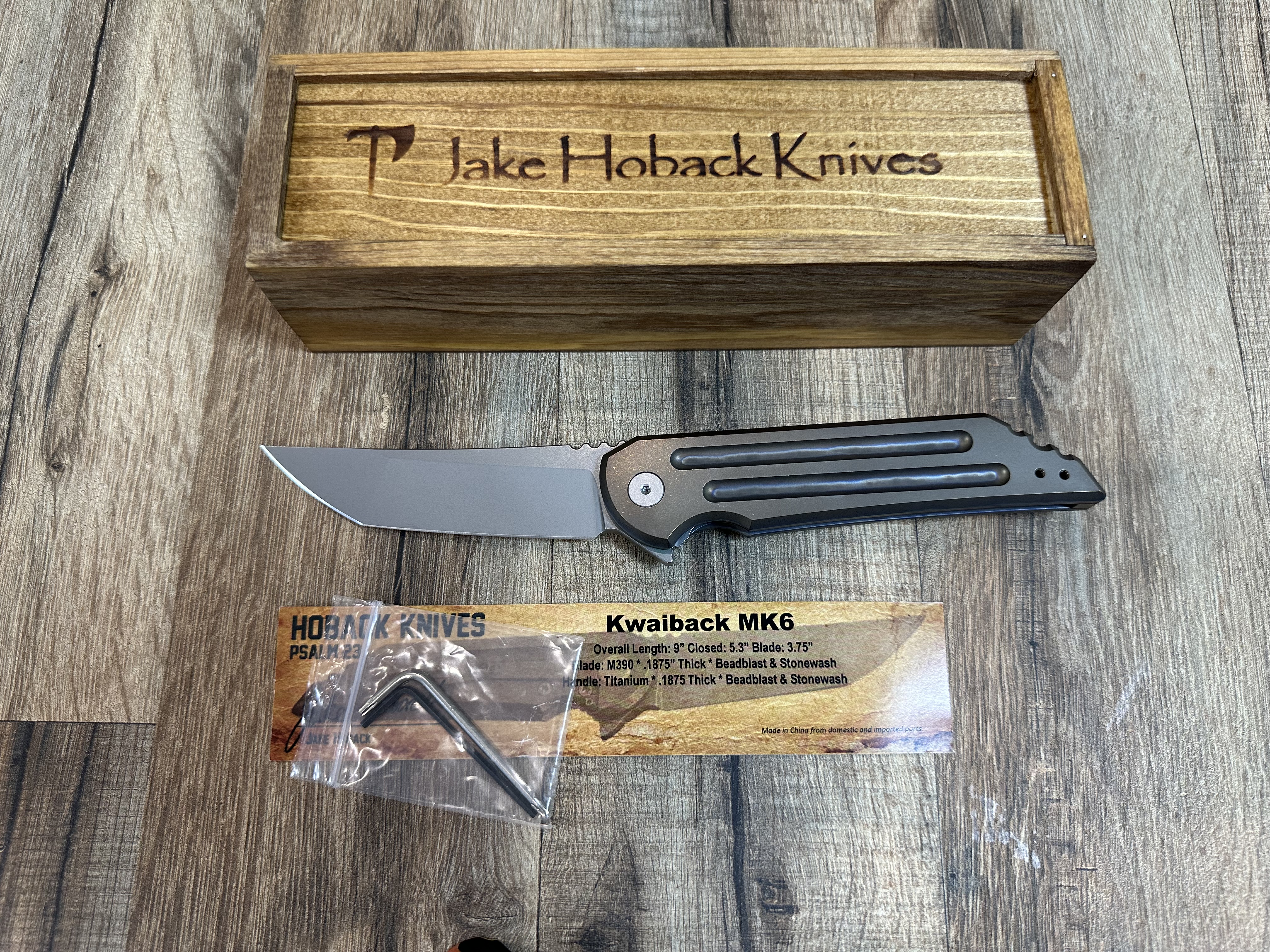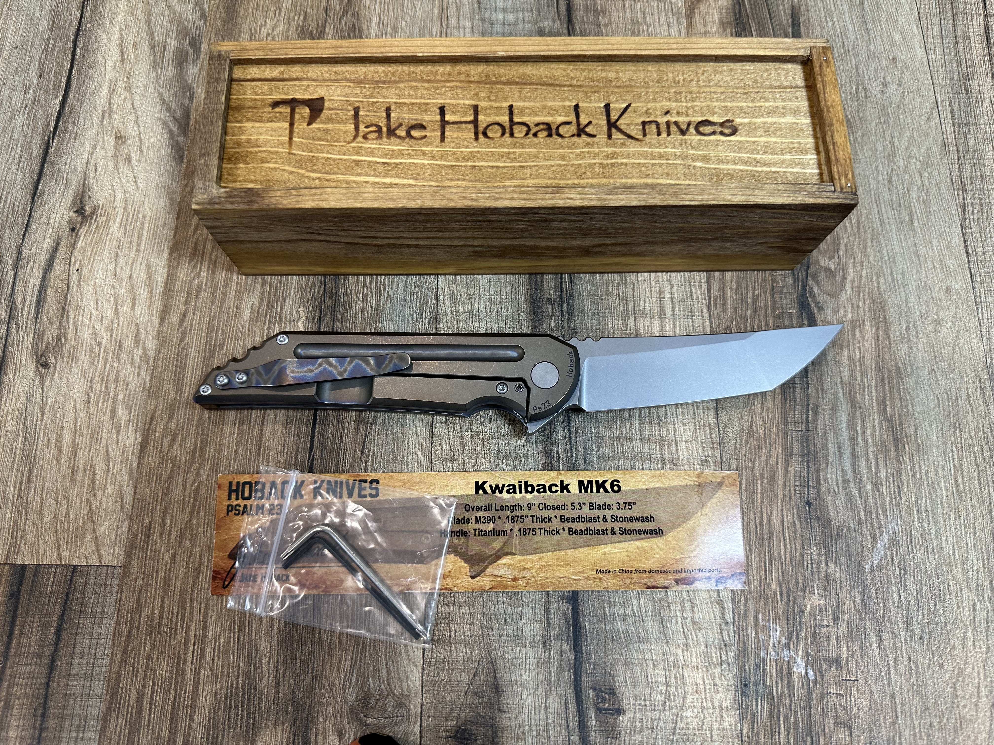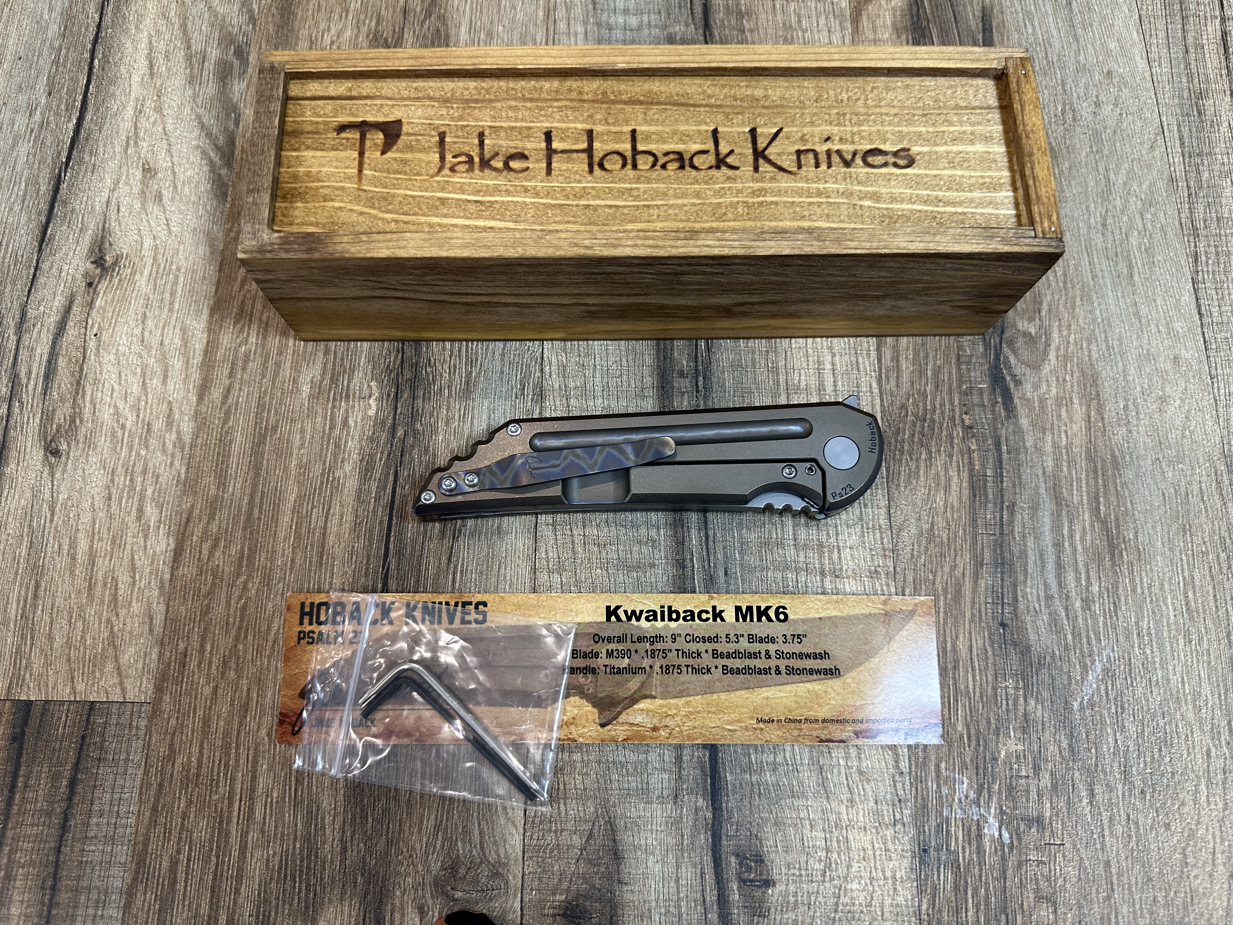 Jake Hoback Kwaiback MK6 Описание (перевод) предоставление продавцом в США «В этом объявлении представлен Jake Hoback MK6 титановая ручка с пескоструйной обработкой и полировкой, лезвие из стали M390. Нож был изготовлен по индивидуальному заказу....ручка была анодирована бронзой, долы рукоятки и по краю рукоятки обожжены, клипса также была анодирована бронзой и обожжена. Нож в новом состоянии, ни разу не использовался и не переносился. Анодирование и обжиг ножа были выполнены сразу после того, как я купил его штатным настройщиком дилера, у которого я купил нож. Работа, изготовленная на заказ, вживую выглядит намного лучше, фотографии не передают этого!» Состояние минт, по всем вопросам пишите в личные. Видео ножа: https://youtube.com/shorts/AHnsuCbKfvc?si=01enFFolL1e24aFt Цена: 14 999 грн
