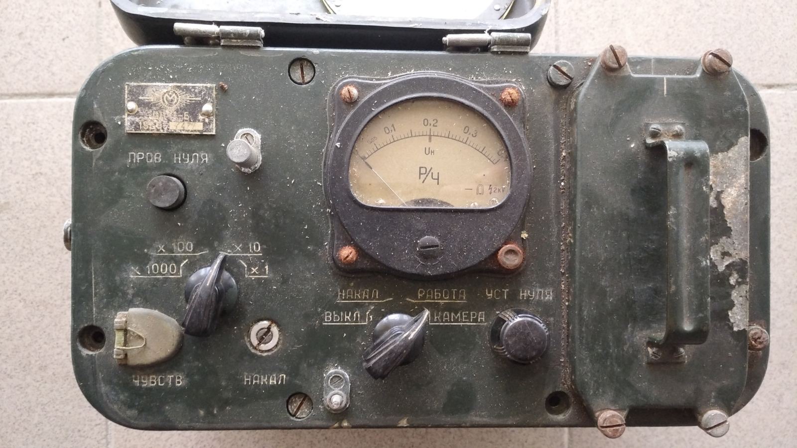 Рентгенметр ДП-1-В Назначение и основные технические данные. Рентгенметр ДП-1-В так же, как и рентгенметр ДП-1-Б, предназначен для измерения уровней гамма-радиации в полевых условиях и для обнаружения бета-излучений. Диапазон измерений прибора — от 0,02 до 500 р/час; диапазон разбит на четыре поддиапазона: от 0,02 до 0,5 р/час; от 0,2 до 5 р/час; от 2 до 50 р/час; от 20 до 500 р/час. Допустимая неточность показаний прибора в пределах измерений от 0,1 до 0,5 р/час, от 1 до 5 р/час, от 10 до 50 р/час и от 100 до 500 р/час не превышает ±20% от измеряемой величины (при нормальном режиме питания и нормальных метеорологических условиях), в пределах измерений от 0,5 до 1 р/час, от 5 до 10 р/час и от 50 до 100 р/час не превышает ±30% от измеряемой величины. Погрешность показаний в пределах от 0 до 0,1 р/час на 1-м поддиапазоне, от 0 до 0,5 р/час на 2-м, от 0 до 5 р/час на 3-м и от 0 до 50 р/час на 4-м поддиапазоне не гарантируется. В остальном технические данные рентгенметра ДП-1-В аналогичны техническим данным рентгенметра ДП-1-Б.